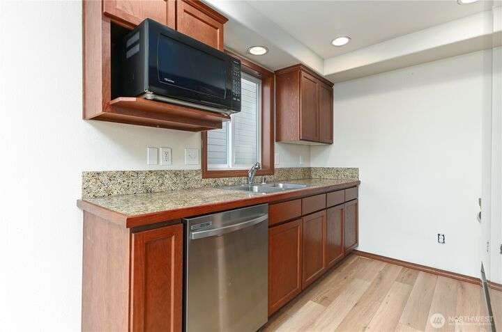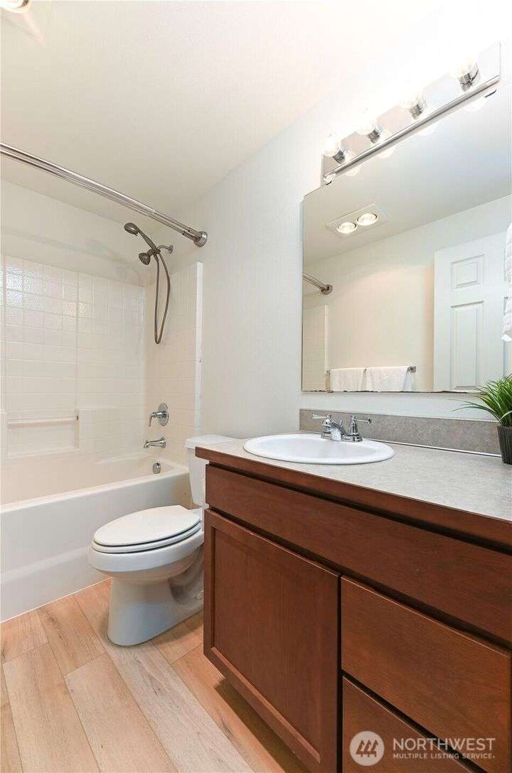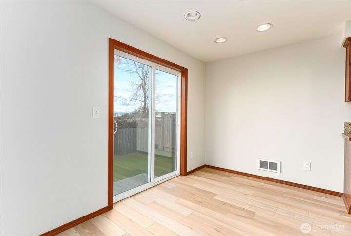 Freshly updated 4 bedroom property with a cheery, covered entry leading to the heart of the home’s main floor. New vinyl plank throughout and updated kitchen appliances. All new flooring upstairs as well, along with a light filled primary bed & bath w/huge walk-in closet. Recently painted interior and exterior. Fenced and newly turfed backyard looks at an expansive and private greenbelt w/peaceful views. Community offers fantastic amenities, includes playgrounds, a basketball court and soccer field. With ductless A/C and no shared walls this turn key property combines comfort with community living.