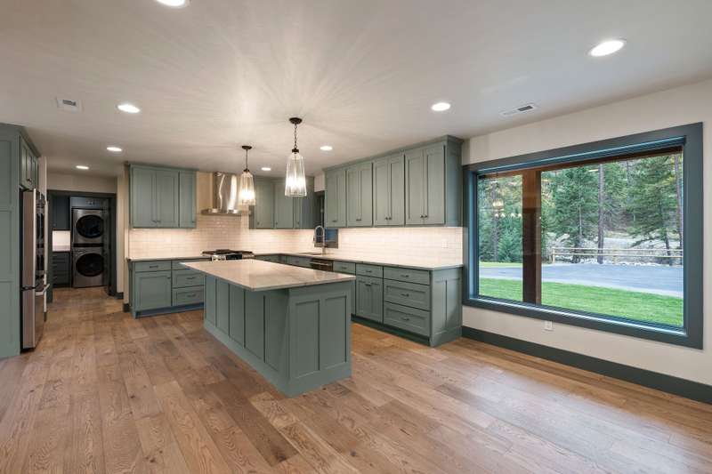Nestled in the woods above Flathead Lake in Lakeside, Montana, this luxurious residence in presents an unparalleled living experience, exhibiting amazing design and top-tier materials throughout. The home was completely remodeled in 2025 and is easily mistaken for a newly constructed residence. The heart of this home resides in its open floor plan, where the living room stands as a testament to architectural brilliance, featuring a fireplace, a beamed ceiling, a high ceiling, a vaulted ceiling, and a wood ceiling that come together to create a warm and inviting atmosphere, perfect for relaxation or gathering. The kitchen boasts a large kitchen island, shaker cabinets, and stone countertops, complemented by a backsplash, a wall chimney range hood, a high-end refrigerator, and a high-end range oven, making it a culinary enthusiast's dream. Updates include new septic system, paved drive, and gated entry. New pole barn shop structure for extra parking and storage.