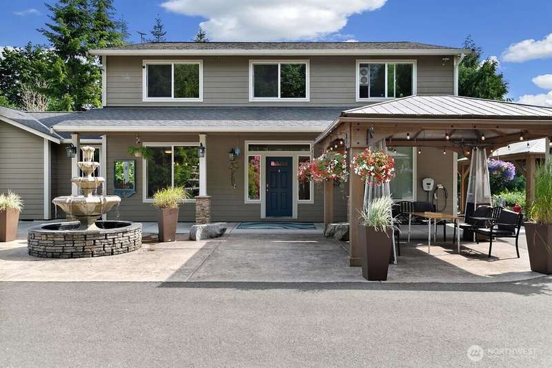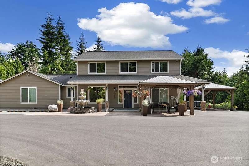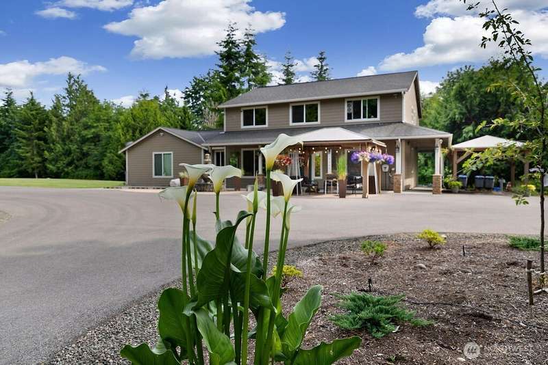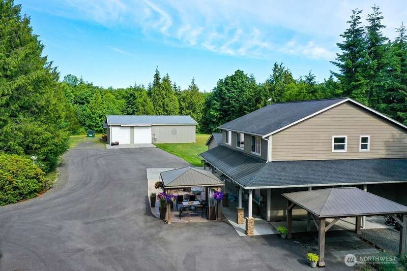 Escape to country living with this beautifully situated 5 usable acres. Gated 4 bedroom 2 1\2 bath open concept, theatre room, 3 bedrooms up, solar panels, Generator, Media Room with screen projectors and Bar for entertaining, outdoor patio landscaped with 40X60 garage with lifts and all the things you would need to store cars or have a workshop. The privacy and location for easy commuting. Media room all screens and projectors and couches stay. The outdoor furniture including tables on patio stay.
