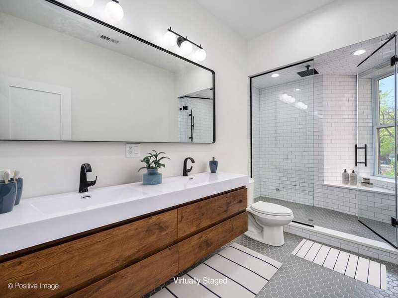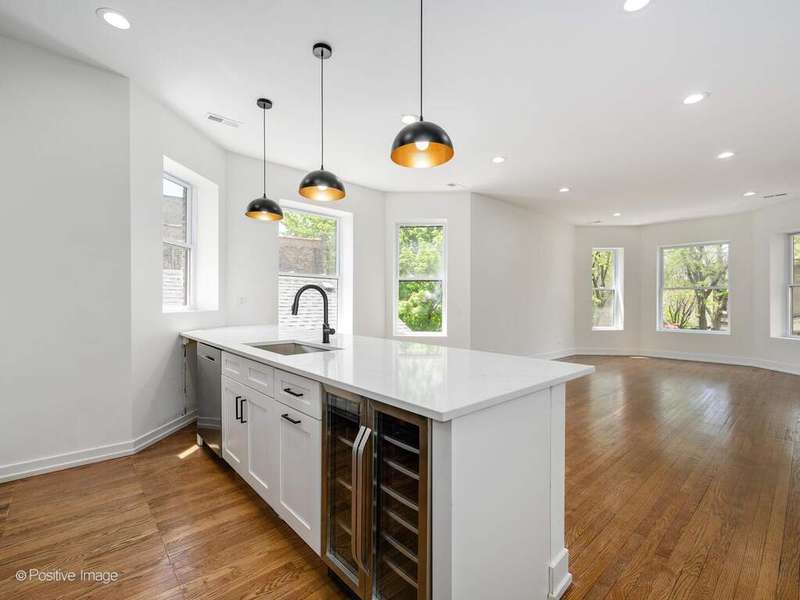 Welcome home to your gorgeous, sun filled, and gut renovated (in 2023) apartment in a classic Chicago Greystone. This apartment features 3 bedrooms, 2 full bathrooms, and an oversized private patio that is not to be missed. Stunning and updated, open concept kitchen with designer finishes, quartz countertop, large peninsula with counter seating, beverage fridge, stainless steel appliances and plenty of storage in custom shaker cabinets. Primary bedroom boasts walk in closet and en-suite bathroom with dual vanity and extra large, steam, shower. Apartment features in-unit washer dryer, central heat and air with Nest thermostat for tenant comfort. Garage parking available for additional rent. Pets subject to approval from ownership. Broker owned interest. Listing broker is related to an owner in the building.