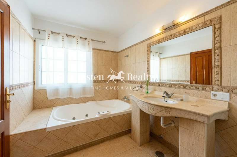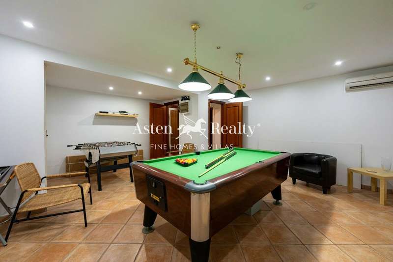 The property has a fully equipped separate kitchen with a large worktop, designed both for preparing family meals and for those who enjoy cooking. Its seven bedrooms, functionally distributed throughout the villa, offer spaciousness, comfort and privacy for all guests. In addition, it has an integrated games room, designed for entertainment and social dynamics, with spaces for various activities.