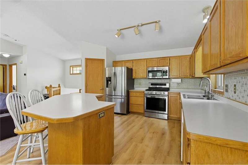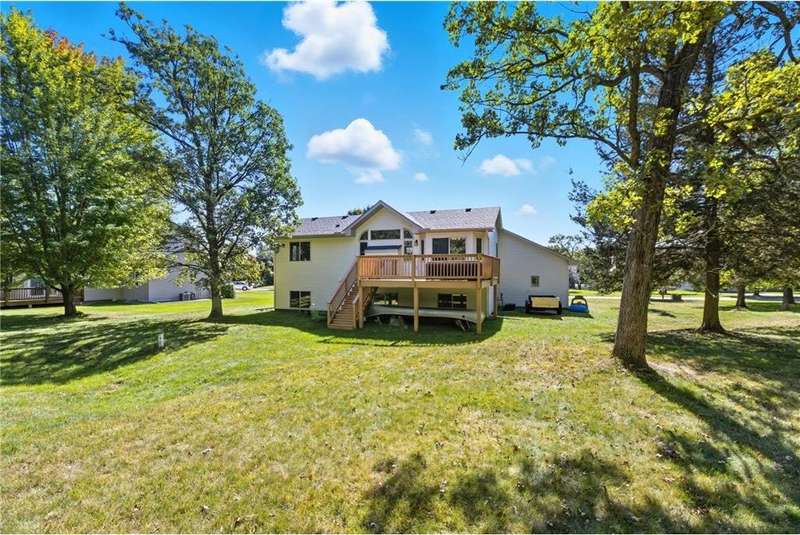 Welcome to this beautifully maintained split-entry home set on over half an acre in a desirable neighborhood just outside of town. Step inside to a bright, vaulted living room featuring a cozy gas fireplace and an open layout that flows into the dining area and kitchen with a handy pantry. The home offers 3 bedrooms and 2 baths, including a primary suite with a walk-in closet. Enjoy additional living space in the finished lower-level great room—perfect for gatherings or movie nights. Outside, relax or entertain on the deck overlooking the spacious yard. Recent updates include a new roof (2022) and a new driveway apron (2022). A 3-stall garage provides plenty of space for vehicles and storage. A wonderful place to call home with a peaceful setting and close-to-town convenience!