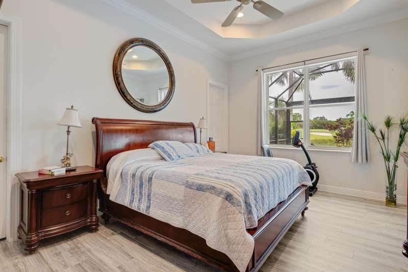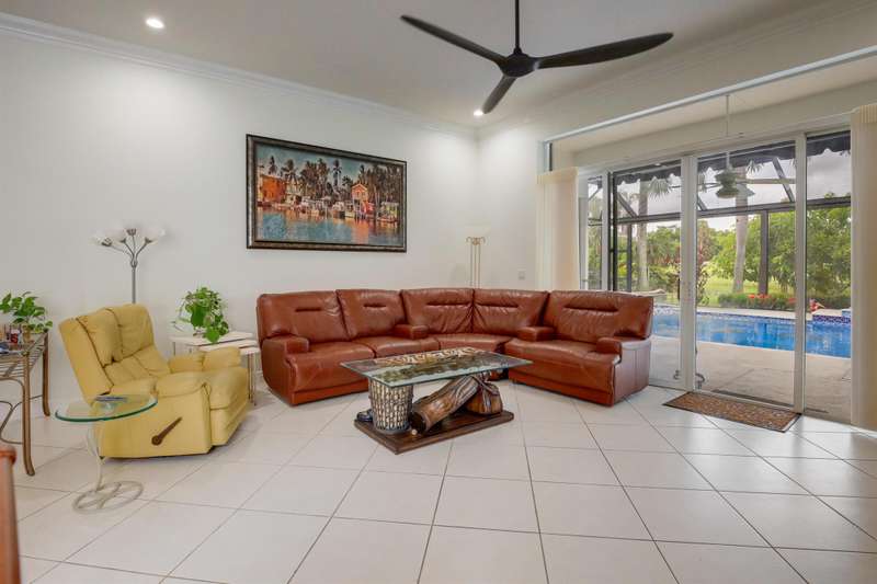 This must see residence offers the perfect blend of comfort, style and location. Overlooking the lush greens of the golf course and sparkling lakes, this serene backdrop for everyday living. Whether you're looking for a peaceful retreat or a home close to vibrant amenities, this 3 bedroom property truly offers the best of both worlds. New salt water heater for pool.