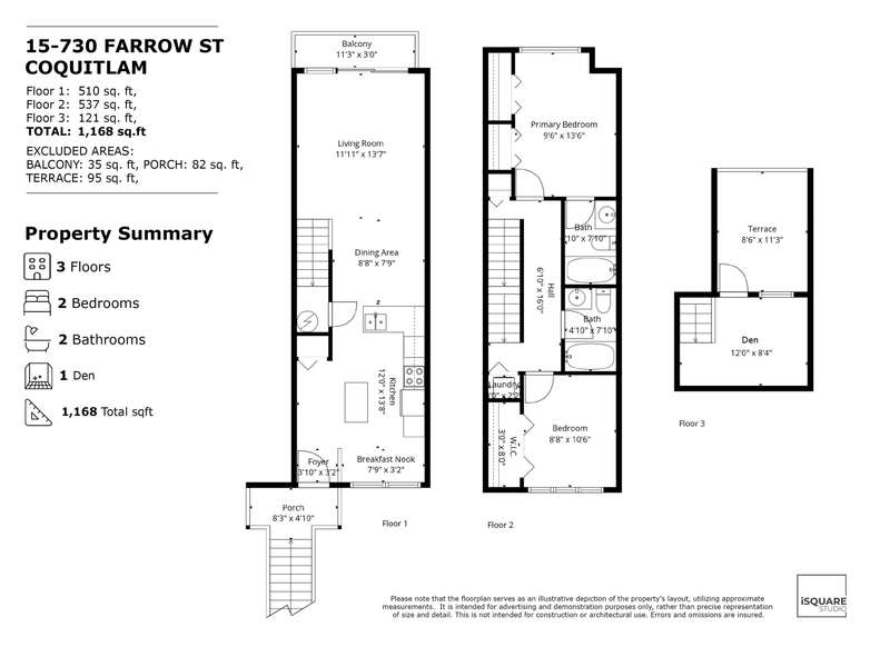 Welcome to Farrow Ridge—your opportunity to live in the vibrant and sought-after Burquitlam community! Just a 5-minute walk to Burquitlam Station, shops, the new YMCA, and with easy access to SFU and major highways, this location has it all. This stylish 3-level townhome features 9-ft ceilings, fresh paint, and new laminate flooring throughout. Enjoy an inviting open-concept main level, two spacious bedrooms, and a versatile loft/den perfect for a home office or creative space. Step onto your private rooftop patio to relax or entertain while taking in the views. Move-in ready and perfectly located—don’t miss out on this amazing home!