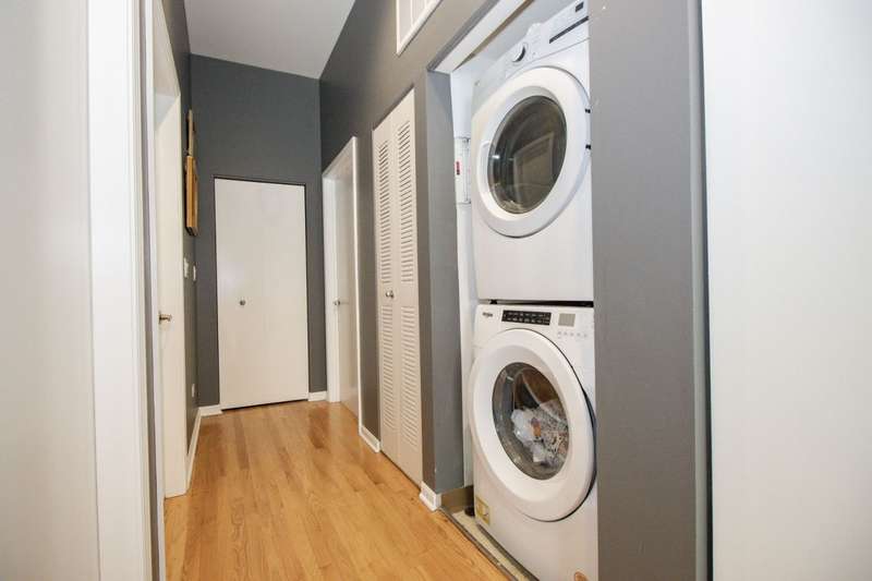 This stunning 2-bedroom, 1-bathroom nestled in River North has hardwood floors that flow seamlessly throughout the open-concept living space perfect for entertaining or unwinding after a long day. The spacious kitchen has ample counter space and cabinets. The in-unit laundry makes life easier and the private patio lets you wind down or enjoy the city life. The vibrant array of shopping, dining, and entertainment is right at your doorstep with easy access to public transportation. Recent updates include granite countertops (2024), HVAC(2023), washer/dryer (2023). Don't miss out on this incredible opportunity to make this beautiful space your own.