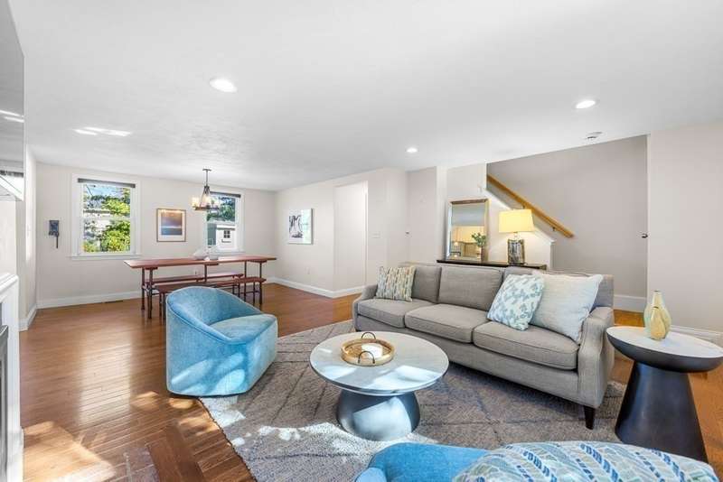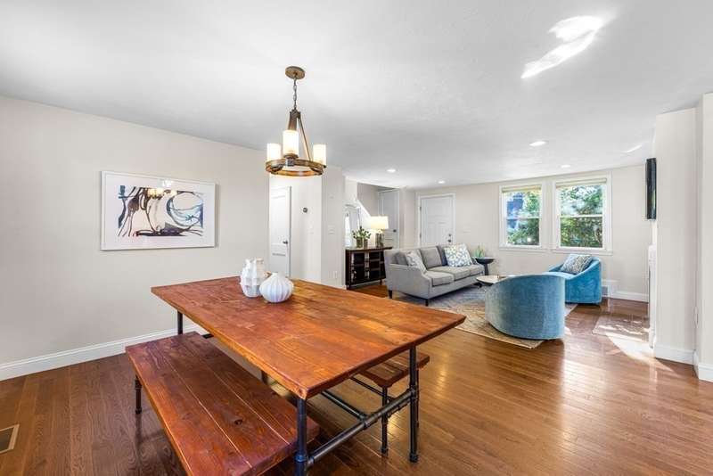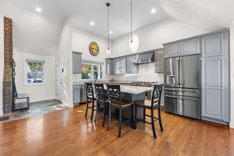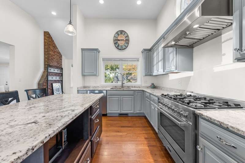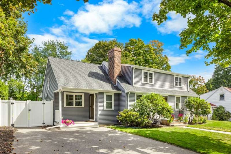 Just move in and be home for the holidays! This turn key expanded cape is designed for today's modern living. Entertaining and every day living is a breeze in the open flow first floor. The vaulted ceiling kitchen features a center island with counter seating, ample upgraded cabinetry and newer stainless appliances. The living room blends seamlessly into the dining area and is large enough for hosting your next gathering. Four bedrooms offer versatility with two positioned on the main level and a sizable primary and secondary bedroom on the second level. Relax in your spacious primary bedroom big enough for a king size bed with custom double sided walk-in closet and sliding barn door. Both full baths are updated and feature ceramic tile with modern fixtures. Outdoors you'll find a manicured fully fenced yard with sizable patio and firepit. Central Air and side street/excellent commuter location completes the package. Make a visit to Lawnview this weekend!