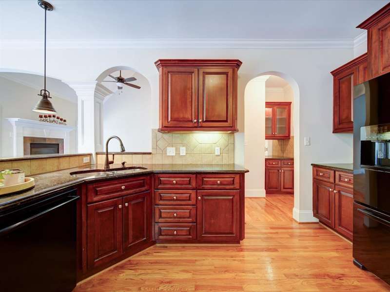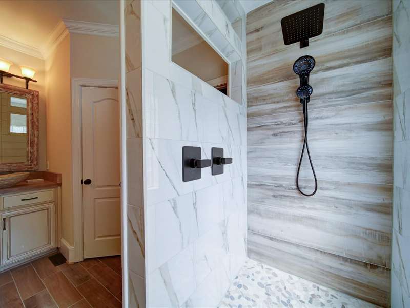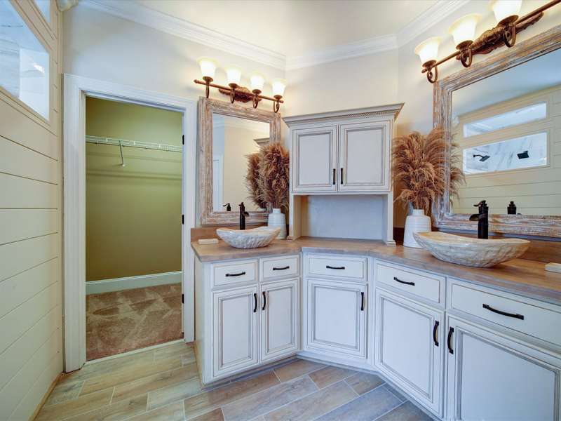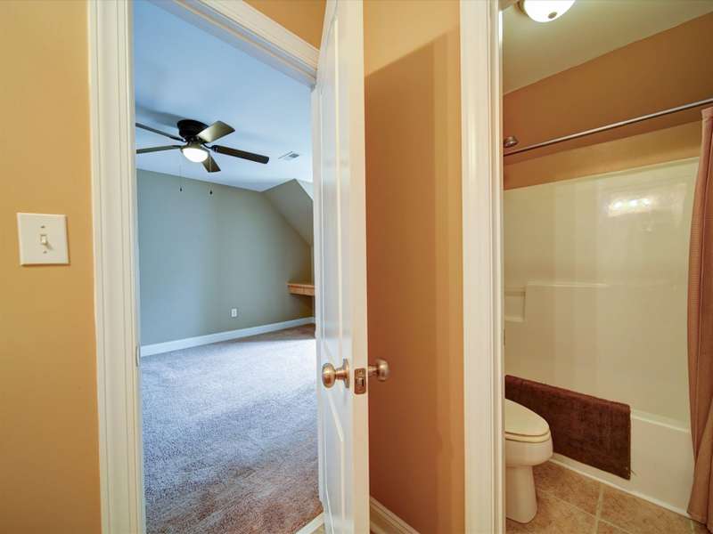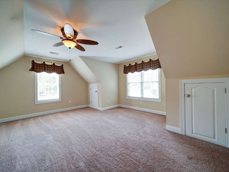 Welcome to this stunning custom-built home boasting 4 spacious bedrooms and 3.5 bathrooms, featuring a flexible layout with a main-level flex room and a private backyard.Rich hardwood floors flow from the entryway into the dining area and kitchen, where you'll find granite countertops and custom cabinetry. The main living room impresses with vaulted ceilings, an open-concept design, and a cozy gas log fireplace.The generously sized primary suite is located on the main level and includes a walk-in closet and a beautifully updated en-suite bathroom. Every detail was thoughtfully considered?from the oversized tiled shower with four shower heads to the tankless water heater, dimmable lighting, and vent heater. Natural travertine vessel sinks with waterfall faucets complete this luxurious space.Upstairs, you'll find three additional bedrooms, two full baths, built-in cabinetry, and a spacious bonus room. Ample storage is available with a walk-in attic and pull-down access.