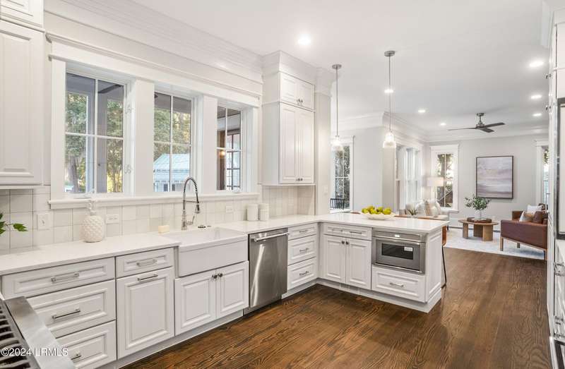 Discover the charm and sophistication of 29 Grace Park, a beautifully remodeled home located in the award winning Habersham neighborhood of Beaufort, South Carolina. Habersham is known for its vibrant community atmosphere, tree-lined streets, parks, charming shops and restaurants. This is Lowcountry living at its finest. Nestled on a corner lot across from the tranquil Mum Grace Park, the main house features 3,748 sq ft of high-end living. With 4 bedrooms, 3.5 bathrooms, and a thoughtful blend of modern upgrades and timeless Southern Charm, this meticulously renovated home is designed for comfort, luxury, and convenience. There is an additional 480 sq ft studio apartment located above the garage making it perfect for guests or an office. The spacious primary suite is located on the first level. It offers privacy and convenience complete with a private laundry area inside the walk-in closet. The second level features 3 additional bedrooms , two full bathrooms, and an additional laundry room to make household tasks easier. The heart of the home has been reimagined with a full kitchen remodel, including custom cabinetry, modern appliances, and a newly added walk-in pantry for exceptional storage. The former laundry room off the kitchen now functions as a well-appointed mud room. Every space in the home has been refreshed with new paint and refinished floors, bringing warmth and elegance throughout. All of the bathrooms were taken down to the studs and rebuilt with new tiling, custom cabinetry, and luxury finishes, creating spa-like retreats. Both the family room and living room have new cabinetry and shelving, and the fireplace has been re-tiled adding a charming focal point. Every outlet, light fixture, and ceiling fan in the main house has been replaced, ensuring both beauty and efficiency. The property includes a one car garage, a two bay carport, and a garden shed, providing ample parking and storage. With its elegant renovations, thoughtful amenities, and unmatched location, 29 Grace Park is move-in ready and waiting to welcome you home. This material is based upon information, which we consider reliable, but because it has been supplied by third parties, we cannot represent that it is accurate or complete, and it should not be relied upon as such.