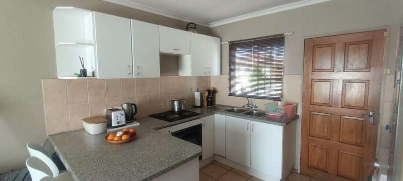 Modern 2 Bedroom, 2 Bathroom Apartment This stylish first-floor apartment offers a comfortable open-plan living area and an open plan kitchen featuring engaging wood cabinets, a breakfast nook, and electric built-in appliances. The master bedroom includes an en-suite bathroom with a shower, basin and toilet, while the second bedroom is serviced by a common bathroom with a bath, basin and toilet. The apartment is fibre ready and includes two covered parking bays downstairs, with ample additional and visitors’ parking available within the complex. Situated in a secure estate with 24-hour guarded security and access control, this property offers peace of mind and convenience. Ideally located close to all major amenities, it’s the perfect blend of comfort, security, and accessibility.