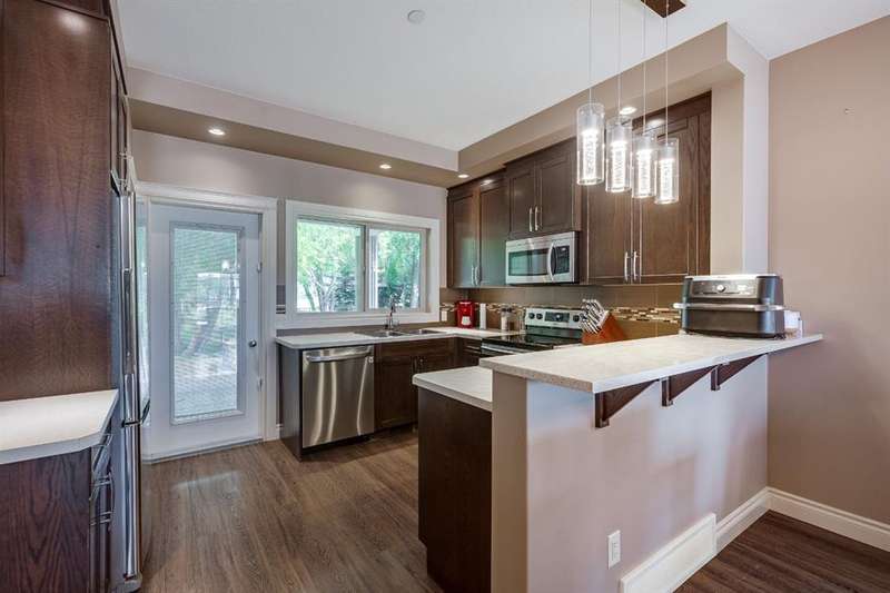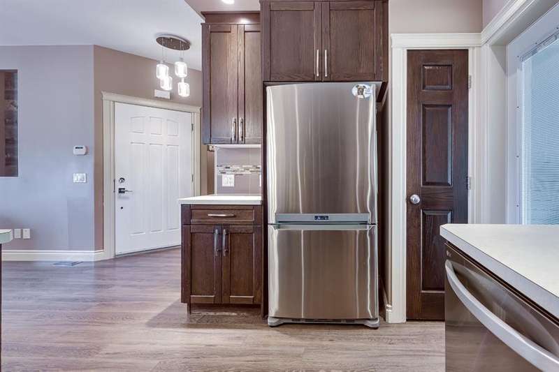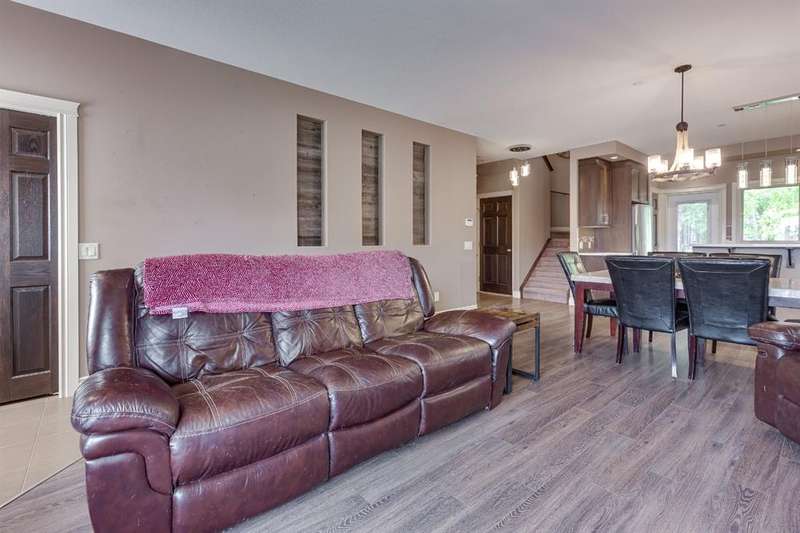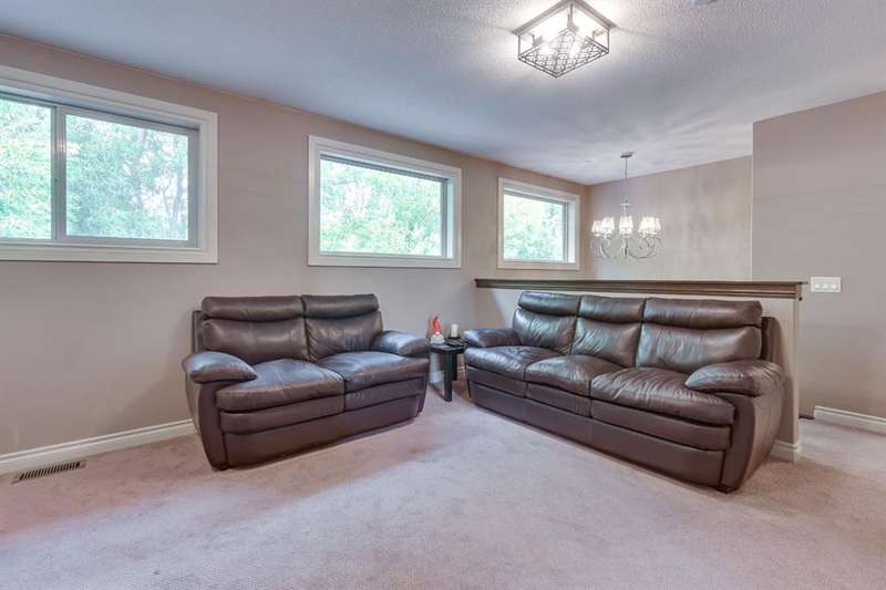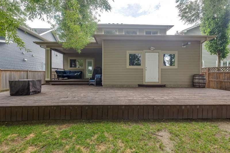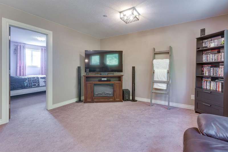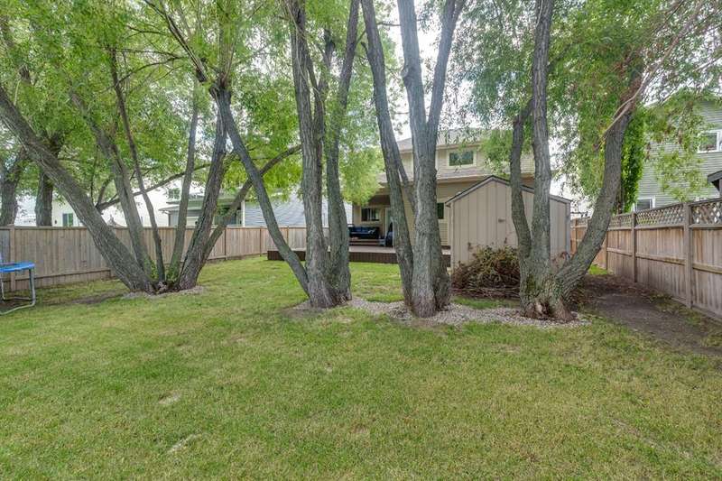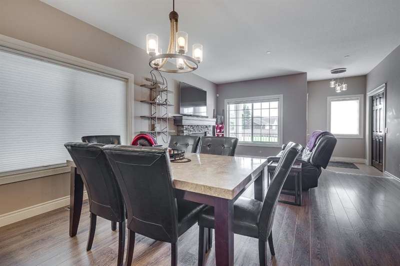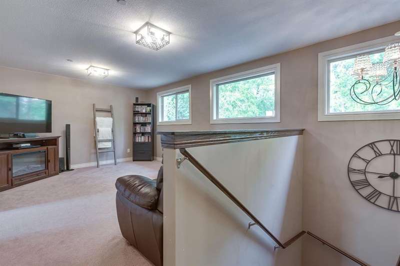 Exceptional Home Backing the Golf Course!! Welcome to a lifestyle of comfort, beauty, and convenience in this immaculate 1,728.33 sq ft Gold Seal home, perfectly positioned on the 17th Fairway of the Carstairs Golf Course. Imagine waking up to sweeping golf course views, enjoying peaceful mornings on your charming front veranda, and hosting friends in a home that blends elegance with everyday functionality. The open-concept main floor is warm and inviting, featuring a stunning stone-faced gas fireplace, sunlit dining area, and a chef-inspired kitchen with raised breakfast bar and stainless steel appliances. A handy half bath and main-floor laundry add to the thoughtful design. Upstairs, unwind in the spacious bonus room, two generously sized bedrooms (one with walk-in closet), and a luxurious primary suite boasting a walk-in closet and spa-style ensuite with soaker tub. The newly finished basement expands your living space with a large family room anchored by a cozy electric fireplace, plus hidden rough-ins for a future bathroom. Step outside to your private outdoor oasis—an impressive 700+ sq ft deck on concrete pilings, overlooking a beautifully landscaped, mature-treed backyard with stunning golf course vistas. A large garden shed keeps tools and toys organized, while the oversized heated 4+ car garage/workshop is perfect for car lovers, hobbyists, a home gym, or extra storage. Set in a quiet, low-traffic neighborhood, this home also features a state-of-the-art fire suppression sprinkler system for peace of mind and lower insurance premiums. Fully fenced yard, decorative walkways, and the added perk of a brand-new grocery store just a short stroll away make this a truly unbeatable location.