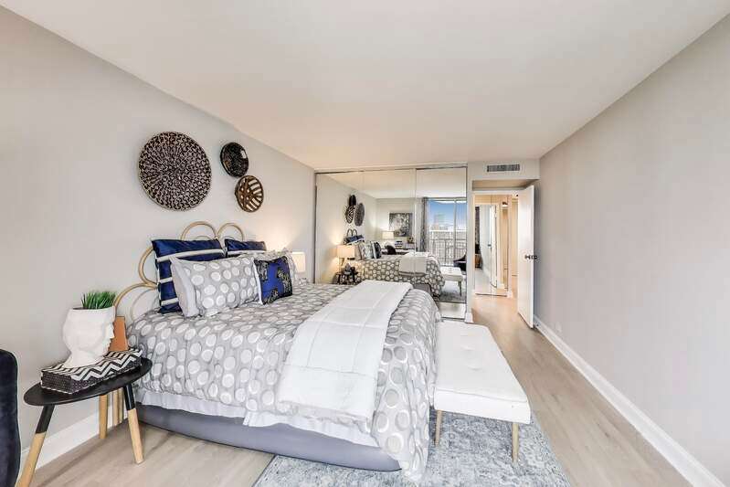 Exquisite, totally renovated Lakefront Condo with Unmatched Views! Experience luxury living in this highly sought-after E-tier condo in the prestigious Malibu building on the Chicago lakefront. This stunning property provides breathtaking views of Lake Michigan, the Chicago skyline, and nearby beaches, providing a serene and picturesque backdrop to your everyday life. The open-concept kitchen is a chef's dream. It showcases high-end appliances and sophisticated finishes, making it perfect for everyday living and entertaining. The kitchen's color palette beautifully reflects its lakefront location, seamlessly blending with the serene hues of Lake Michigan. Redesigned for both style and functionality, the property boasts floor-to-ceiling windows, features a spacious walk-in closet, and expensive floors throughout the entire unit. The bathrooms exude chic elegance, featuring luxurious, high-end finishes that create a sense of indulgence in your daily routine The showers in both bathrooms are noticeably roomier than those in other units, ensuring added comfort. Step onto two balconies to soak in the panoramic views, and enjoy morning coffee, summer grilling, or stunning fireworks while overlooking the lake, yachts, and city lights. The well-managed lakefront building, a 24/7 doorman, offers around the clock security. There is an outdoor swimming pool, sauna, sun deck, party room, dry cleaners, bike room, exercise room, 24/7 valet parking and Amazon hub. Everything is 2 steps away: Mariano's, Whole Foods, bus, train, Lake Michigan beaches, running path, and numerous restaurants. This is a rare opportunity to own a piece of paradise in a highly desirable Malibu building!