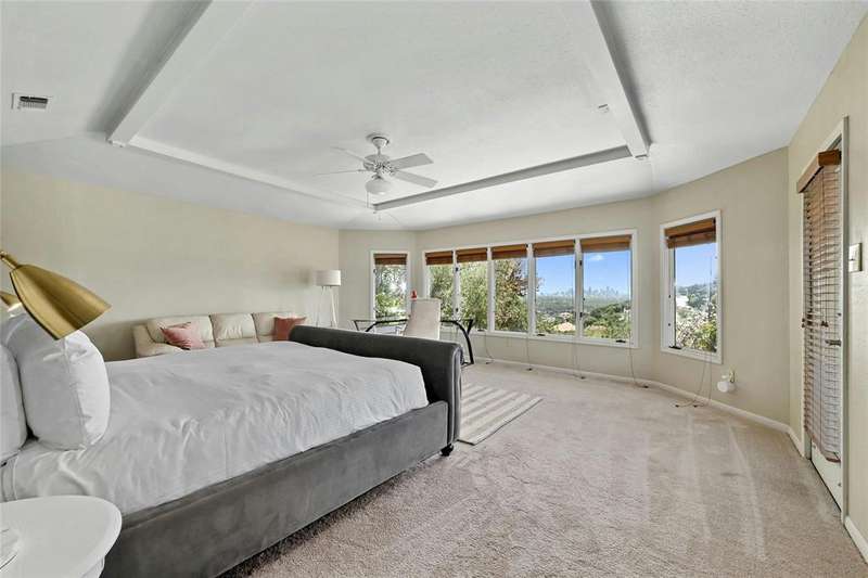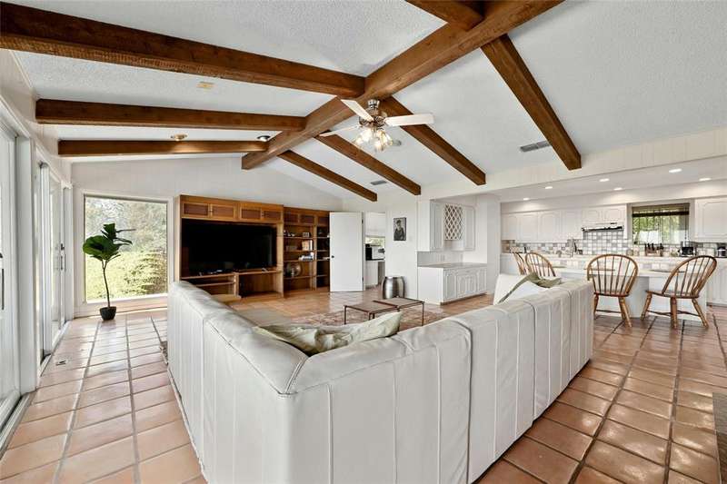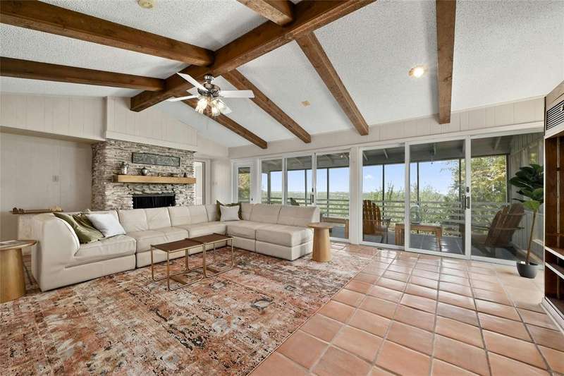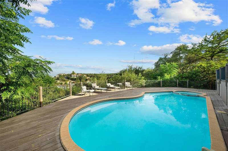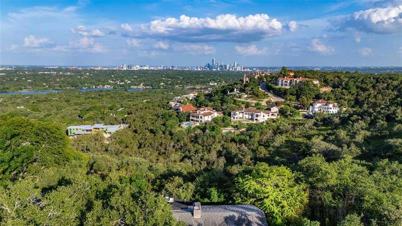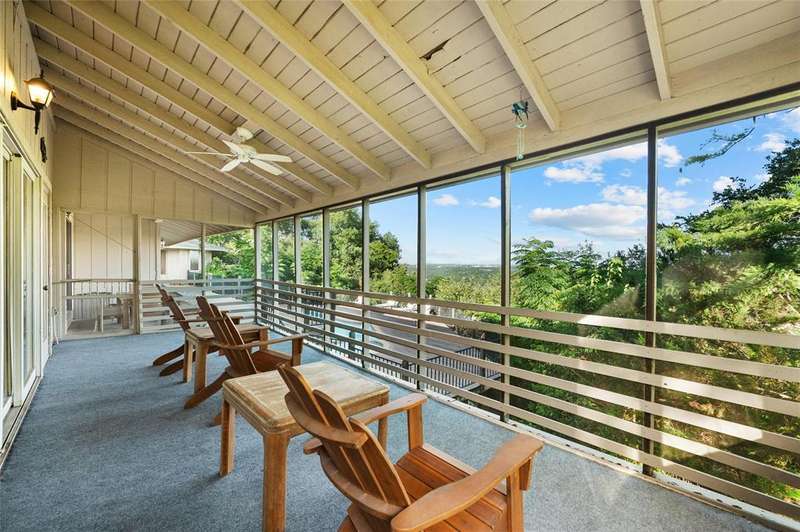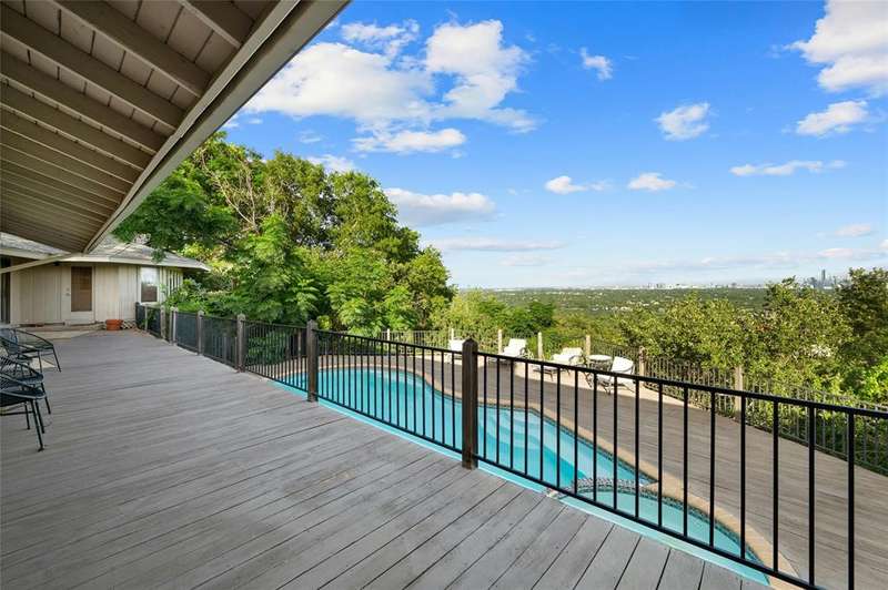 Discover an extraordinary residential opportunity at 2311 Camino Alto on one of the highest hilltops in all of Austin. Nestled on a generous .64-acre lot, this property boasts three bedrooms and three bathrooms, along with two spacious living areas and dining rooms designed for comfort and relaxation. The true highlight of this unique home is its breathtaking view of Austin's ever-evolving skyline and serene Lake Austin below. Enjoy these magnificent vistas from the privacy of your screened-in porch or while lounging on the pool deck, creating an ideal setting for both tranquil moments and entertaining guests. The interiors exude charm with Saltillo tile flooring, vaulted ceilings adorned with wooden beams, and abundant windows that flood each space with natural light, perfectly framing the scenic surroundings.