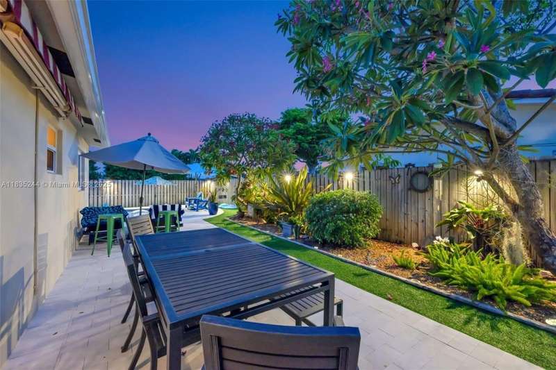 Relax in your salt water heated pool! Patio w/Sunsetter awning. Resort style backyard w/turf grass. TURNKEY corner home. Split floor plan. Large master bedroom/bath. 2 more bedrooms share a bath. Large storage/utility room with washer/dryer. 2car secured carport w/epoxy flooring, adjacent space for boat or RV under the canopy. Large shed for tools/equipment. Fence around the entire property. Updates include A/C 2024; Plantation shutters 2020; LVT flooring 2021; Kitchen cabinets/granite countertop 2007; Impact windows 2015; Pool 2023! All this in desirable Coral Ridge area. Nearby private schools, Pine Crest & Westminster Academy. Blocks from Coral Ridge Presbyterian Church. Minutes away from the quaint, little Town of Lauderdale-by-the-Sea with plenty of dining and shopping options. No HOA