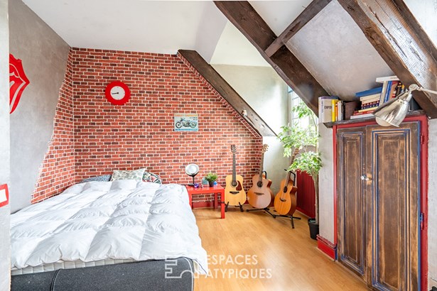 The first floor under the attic offers three bedrooms sharing a spacious, bright bathroom, a dressing room and plenty of storage space. A 65 sqm basement including 2 small rooms, 1 laundry room, 1 cellar and a garage for parking a vehicle and 2 wheels, then a workshop and a lean-to.