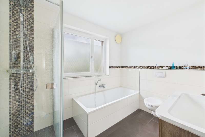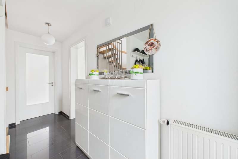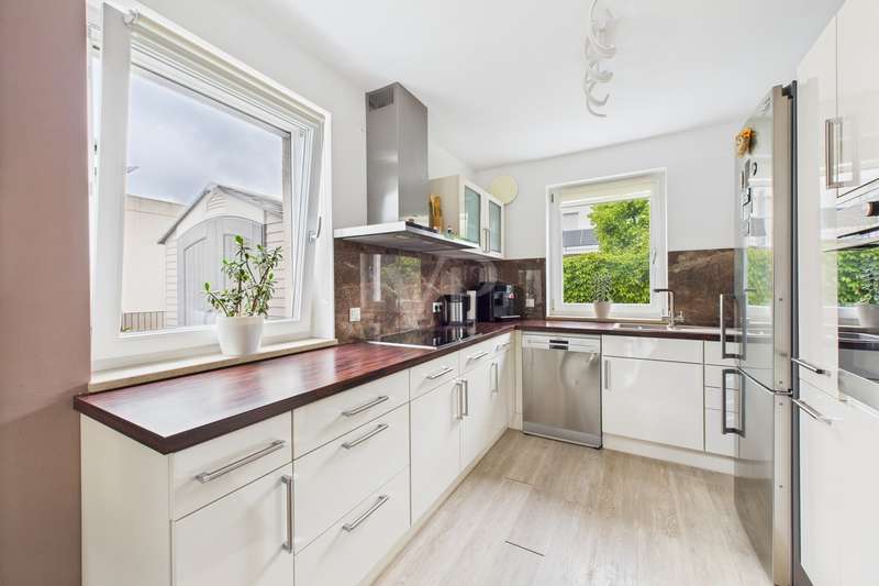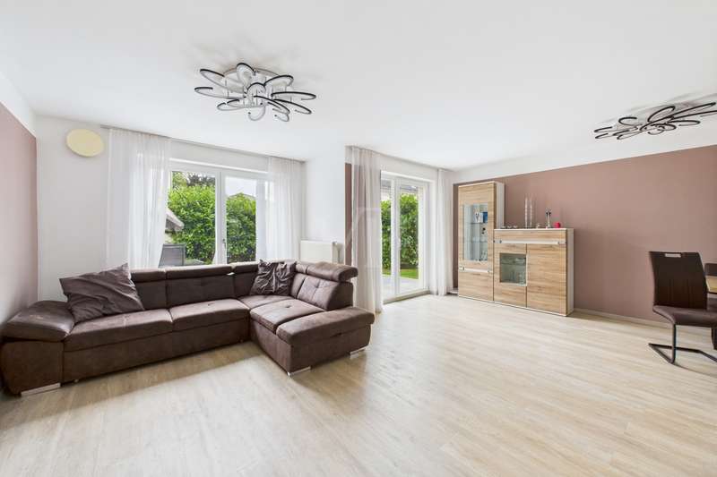 This modern and well-kept semi-detached house, which was built to a high standard in 2014, is located in a quiet and family-friendly residential area of Langweid am Lech. The property boasts a bright, open-plan design and, with a total of six rooms, offers plenty of space for a wide variety of living concepts - ideal for families or couples who need space. On the first floor, you will find a spacious, open-plan living and dining area with an integrated kitchen and direct access to the sunny terrace and beautifully landscaped garden - the perfect place to relax or spend time socializing outdoors. The upper floor comprises three well-proportioned bedrooms and a modern bathroom with a bathtub and shower. The balcony with garden view offers additional space for everyday life. The fully developed attic adds two further rooms and a separate WC. Whether as a children's area, guest room or home office - a variety of uses can be realized here. The property has a full basement. In addition to practical storage space, there is also a sauna in the basement - ideal for relaxing hours at home. The semi-detached house comes with a garage for convenient parking. The quiet residential area rounds off the overall picture and makes this house an attractive home with a well thought-out floor plan and contemporary furnishings.