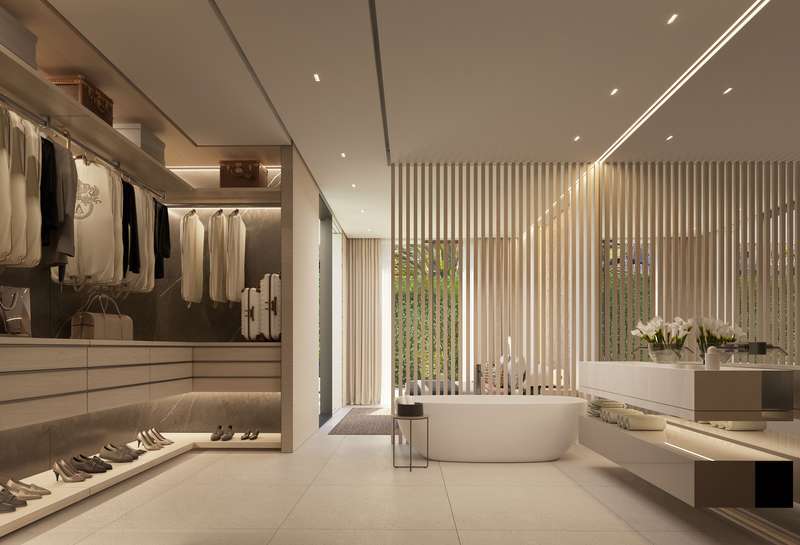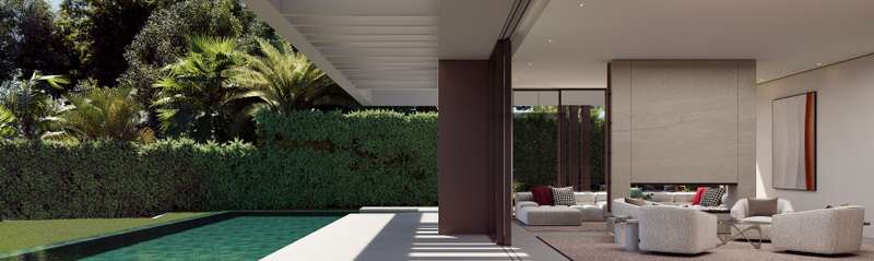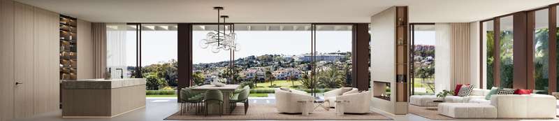 Casa Tesalia is an outstanding design villa which with its frontline golf position is all about entertainment and golf. Stepping into Casa Tesalia you are welcomed by a modern and sleek living space with a nice design kitchen in an open plan to the dining and living room. Through the large floor to ceiling glass doors, you´ll get an amazing view over the golf course of Los Naranjos. Furthermore, on this level there´s 4 bedrooms, all en-suite and with its own terrace. The master bedroom with its almost 40 m2 includes a walk-in closet and designer bathroom in an open plan to create that luxurious suite feeling. The pool area and terrace offers a south orientation with nice views over the golf course and sun all day. Here´s also a golf buggy carport with direct access to the golf course. The roof terrace is every entertainers dream. Here´s you´ll find the outdoor kitchen, seating and dining areas, outdoor cinema, and a DROP spa. All offering amazing views over the golf course and va