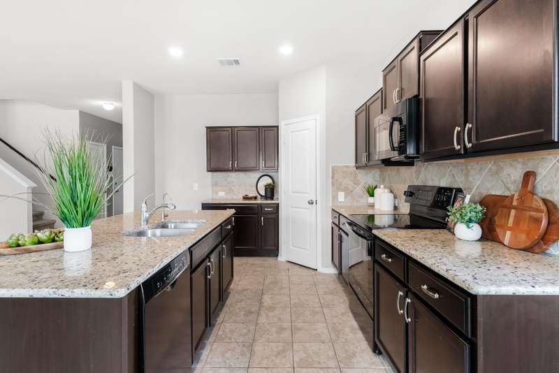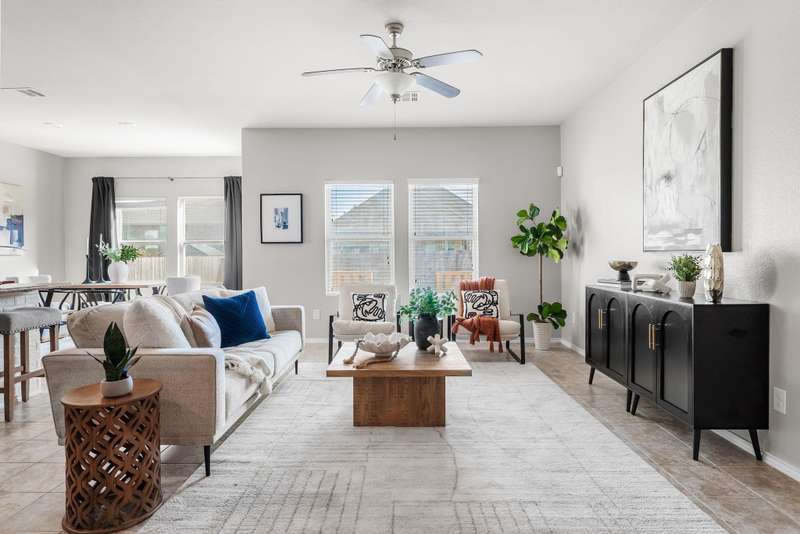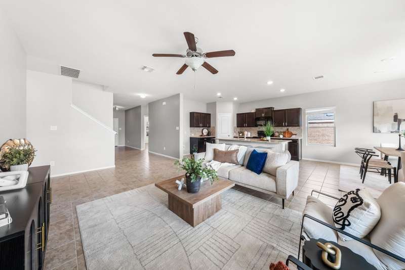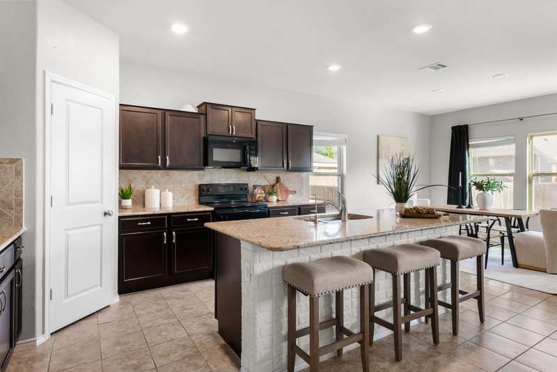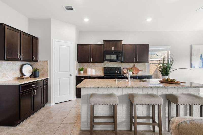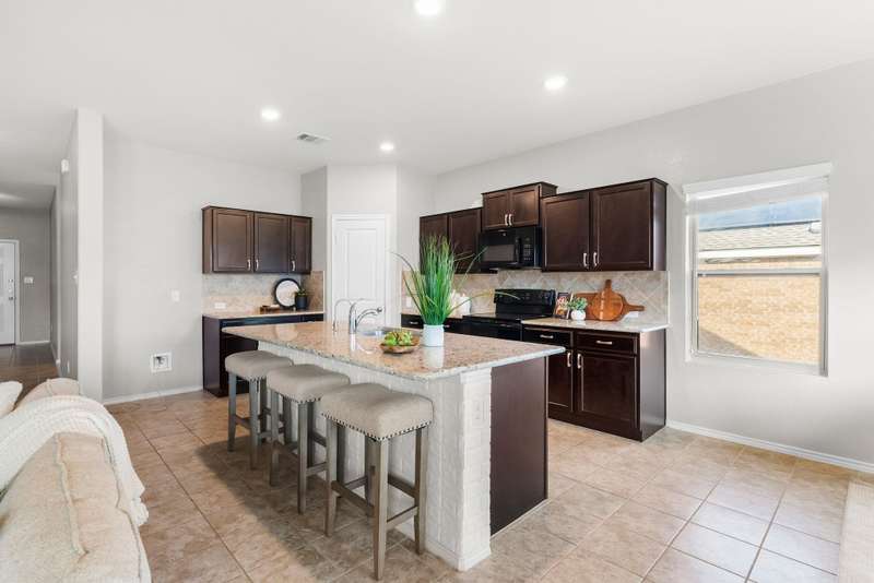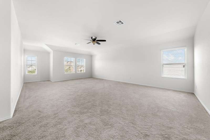 Welcome to this beautifully designed 5-bedroom, 3.5-bath home in the heart of Leander. Featuring a bright and open floor plan, this home is filled with natural light from large windows that overlook the spacious backyard. The kitchen is a true centerpiece — offering a large island with bar seating, recessed lighting, tall ceilings, and an inviting breakfast area perfect for family gatherings. The primary suite is conveniently located on the main floor, complete with a generous ensuite bathroom and a large walk-in closet. Upstairs, you’ll find a spacious game room ideal for entertaining or relaxing. Step outside to enjoy the sizable backyard with a covered patio and deck — perfect for outdoor dining, play, or simply unwinding at the end of the day. This home combines comfort, style, and functionality in one of Leander’s most desirable communities.