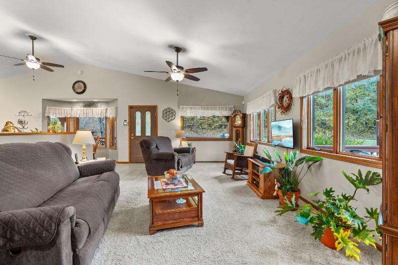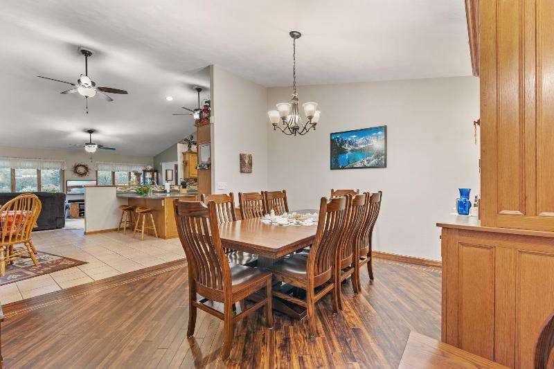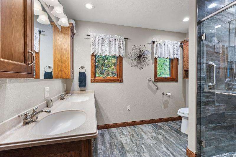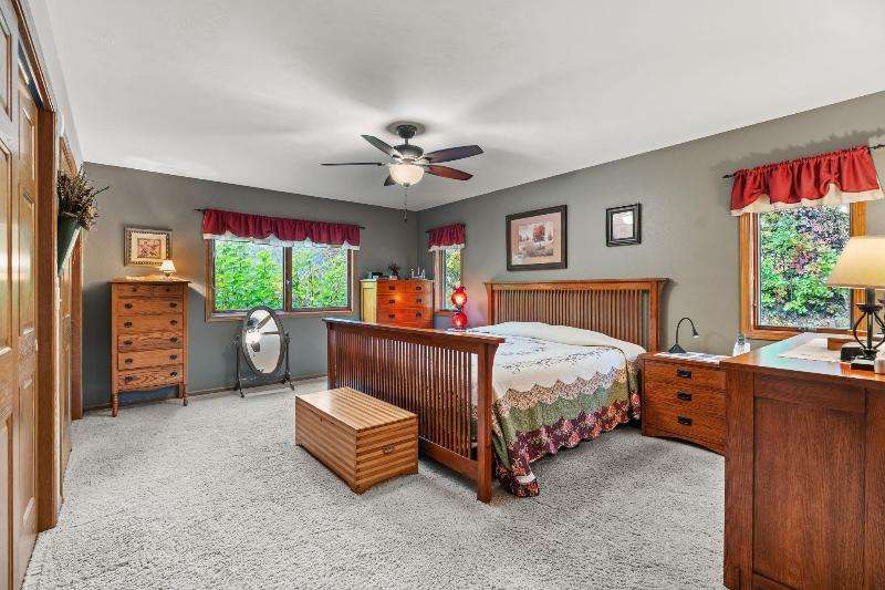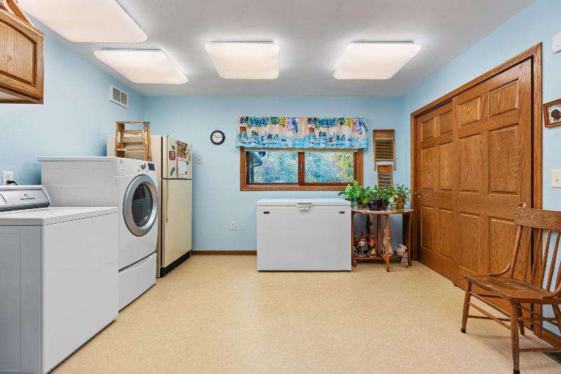 Tucked among the rolling countryside of Hillsboro, this immaculate home combines timeless craftsmanship with serene natural beauty. Every inch has been thoughtfully designed--from the warm, wood-detailed interior & spacious great room to the custom kitchen & inviting lower-level entertainment space complete w/a full wet bar. Oversized Anderson windows bring in abundant natural light & views of the private pond, garden & tree-lined backdrop. The outdoor living spaces are equally impressive, featuring a covered porch, paver patio, & beautifully landscaped grounds. A detached 2-car garage & a 40x60 partially heated pole shed w/a dedicated workshop provides ample room for hobbies & storage. A true retreat offering privacy, luxury, & exceptional attention to detail. 2 wells & home generator!
