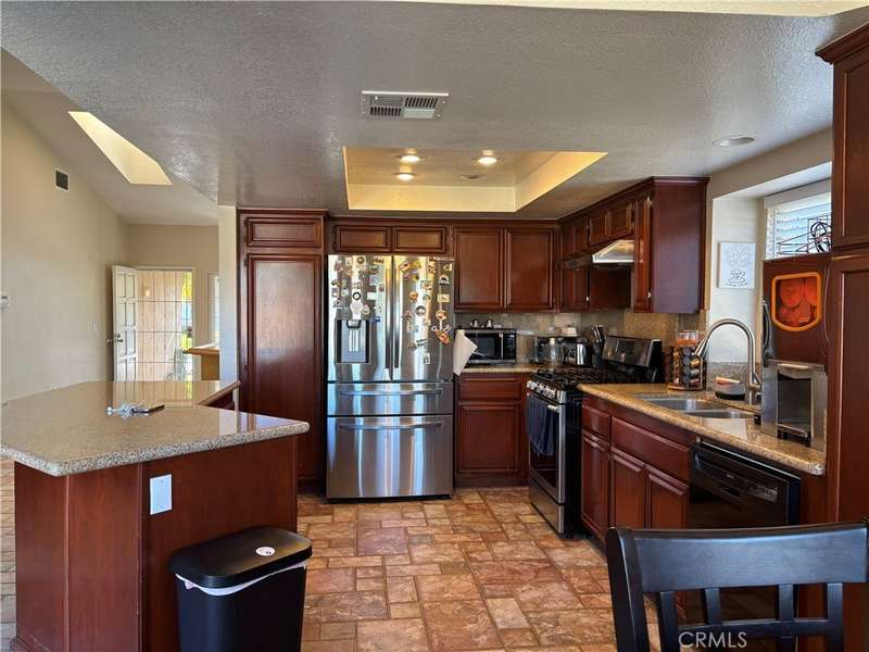A fabulous single story home with views, located in the sought after "Four Seans" community, next to Corona Hills! 4 bedrooms, 2 baths, 3 car attached garage--all on one level without any interior steps. Very spacious living room with high ceilings and a custom walk-in bar. The gourmet kitchen offers granite countertops, a huge island with bar sitting, a newer stove with 4 burners & a griddle, and an oven with self-cleaning feature. Charming family room features a cozy fireplace and a door to the patio. The dining area with a ceiling light/fan is just off the kitchen. All bedrooms are of a great size and have a ceiling fan/light. The luxurious primary suite boasts his and her walk-in closet, a patio door, and an en suite bath with a separate shower and tub, dual sinks, etc. Two of the three secondary bedrooms have a large closet. Newer water heater. Most interior walls were just touched up. Beautiful tile flooring in entry, living room, family room, hallway, baths, and kitchen. Individual laundry room with built-in cabinets. 3 car attached garage has a direct access to the house. Central AC and heating. Beautiful curb appeal. Enjoy the mountain views in the large backyard! The HOA amenities include pool, spa, 2 tennis courts, etc. Conveniently located off MCKINLEY exit off 91 Fwy. One exit to 15 Fwy. Short drive to Kaiser Riverside, downtown Riverside, Mission Inn, etc. Ready for move-in! Call today!