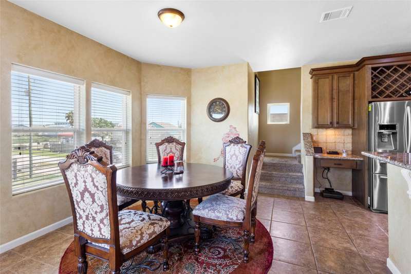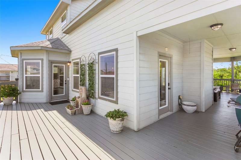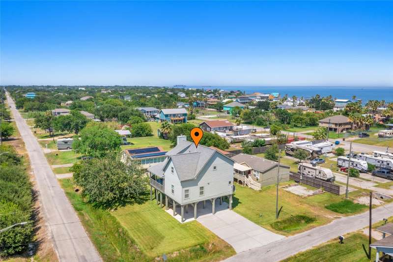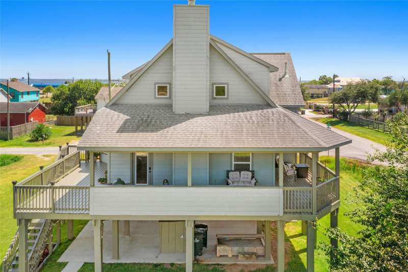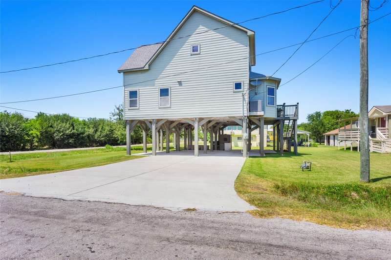 Discover your slice of coastal paradise! This beautifully maintained 2-bedroom, 2-bathroom home in Sunny San Leon offers laid-back coastal living with unbeatable charm. Elevated for stunning breezes and added peace of mind, this home is just minutes from Galveston Bay, local marinas, and the area's best seafood spots. Step inside to an open-concept living and kitchen area flooded with natural light, perfect for entertaining or relaxing after a day on the water. The kitchen features modern appliances, ample cabinet space, and a breakfast bar for casual dining. Both bedrooms are spacious and private, with the primary bedroom and bathroom located upstairs for added privacy and separation. Enjoy sunrise coffee or sunset cocktails on the wrap around deck, or host gatherings under the home’s covered area ideal for outdoor dining, storage, or parking. Whether you're looking for a full-time residence, weekend getaway, or income-producing property, this home checks all the boxes.