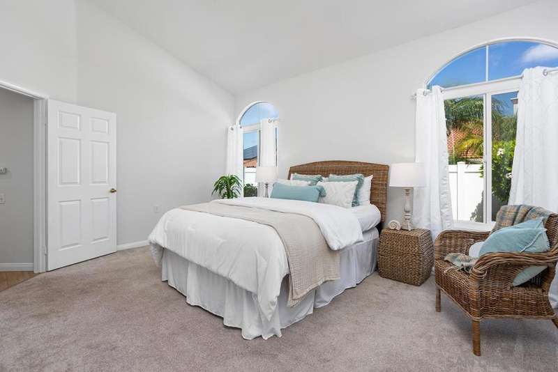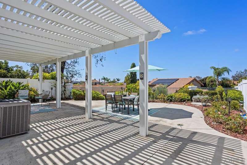 Experience coastal living at Villa Trieste, a desirable 55+ gated community in Oceanside. This 1,860 sq. ft. single-story townhouse with a versatile loft (optional 3rd bedroom) offers 2 bedrooms, 2 bathrooms, and a bright, open floor plan. Natural light pours through soaring ceilings and three sets of French doors--two opening from the family/dining room and another from the kitchen--inviting ocean breezes inside. The kitchen blends function and charm with granite counters, stainless steel appliances, and a cheerful breakfast nook framed by windows. The spacious primary suite includes vaulted ceilings, dual sinks, a large walk-in closet, and a beautifully tiled shower. A comfortable guest bedroom and bathroom complete the main floor, while the loft provides flexible space for an office, hobby room, or visiting family. Step outside to your private backyard oasis with a pergola-covered patio, lush landscaping, and distant ocean views peeking over rooftops--perfect for relaxing with friends or enjoying quiet mornings. Additional highlights include central A/C, indoor laundry, and an attached 2-car garage. Villa Trieste offers resort-style amenities including a clubhouse, pool, and spa, all just minutes from shopping, dining, and the beach.