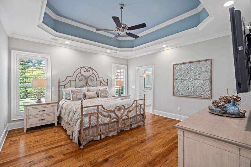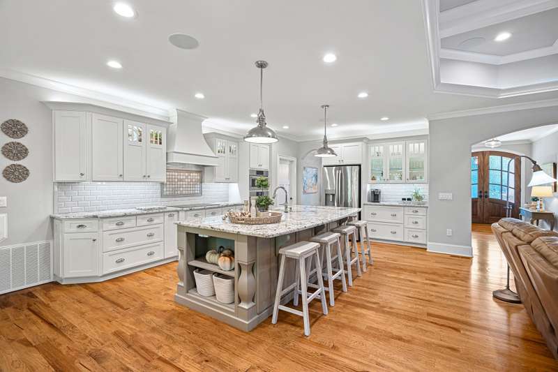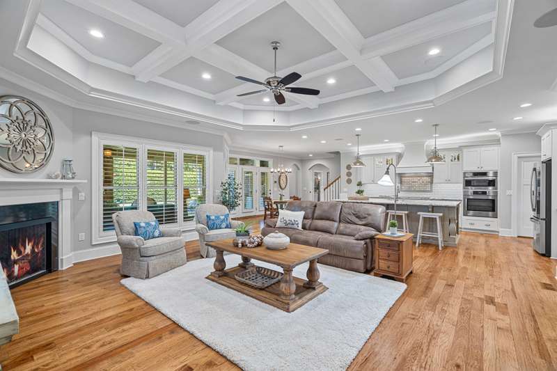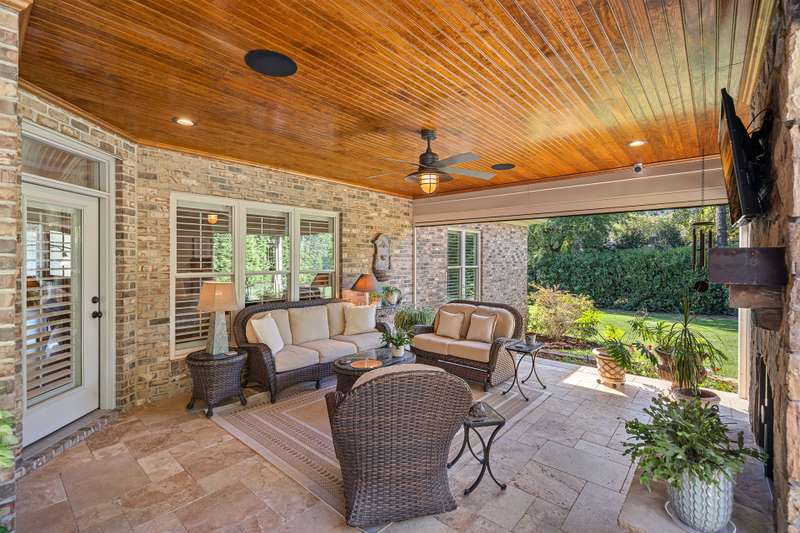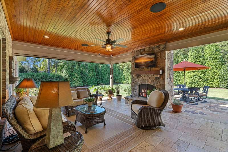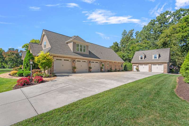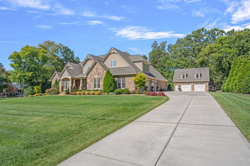 Stone Manor, a custom masterpiece by Mitchell Hartsell. This is the executive home in Concord, NC, you've been waiting to hit the market: a garage-loving, outdoor living, fully appointed home. A dream chef's kitchen featuring a large granite island and countertops designed for entertaining, complemented by custom cabinetry, stainless steel appliances, and an induction electric cooktop. Features include coffered and tray ceilings, as well as plantation shutters throughout the home. This property features five bedrooms, an office space, an open living area, a formal dining room, and a large flex room with a bedroom and a full bathroom upstairs. It boasts five bays for all your cars, trucks & trailers, along with trailer parking and plenty of driveway space. Three-car garage with epoxy floor & insulated garage doors, detached two-car garage featuring 896 sq. ft. on the 1st floor with a ? bath, and workbench. The storage throughout the home will impress you; it is both efficient (with a walk-in closet) and abundant. Stone Manor: brick & stone with vinyl boxing, featuring a front porch with stone walls/floor and columns, complemented by a barrel-vaulted beaded ceiling. The property also boasts stone sidewalks at the front and rear, a stone patio in the rear with a stone wood-burning fireplace & travertine floor, a back porch, and an outdoor kitchen. Whole house Control 4 audio/video/security.