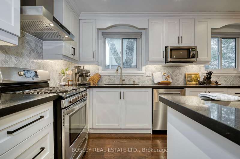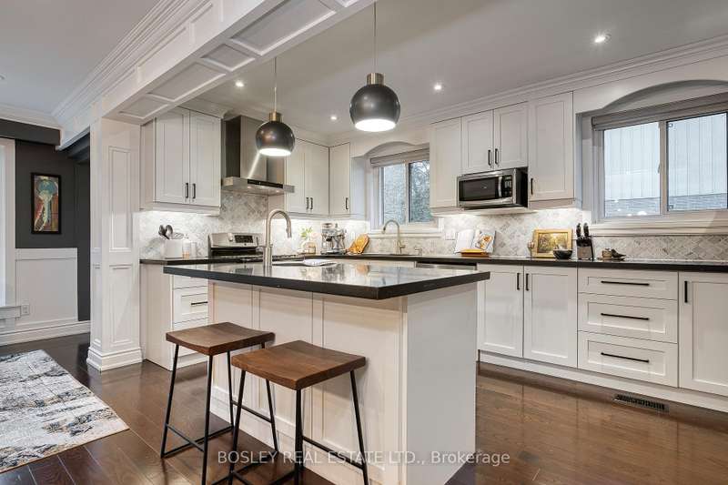 Prime Guildwood location! This beautifully renovated 4-level detached backsplit offers stylish, modern living just one street from the lake. Step into a spacious custom-tiled foyer with ample closet space, leading to an open-concept living and dining area filled with natural light. The updated kitchen overlooks the main living space and features a gas stove, stainless steel appliances, quartz counters, marble backsplash, and a functional island-perfect for everyday living and entertaining. A few steps up are three bedrooms, including a spacious primary with custom wall-to-wall built-ins. The sleek renovated 4-piece bath offers heated floors for year-round comfort. Just off the kitchen, the ground level includes a large bedroom, a renovated 3-piece bath, and a cozy family room with a wood-burning fireplace and new garden doors opening to the private backyard. Enjoy a professionally landscaped outdoor retreat complete with a patio, deck, fire pit, and in-ground irrigation system. Additional upgrades include hardwood floors throughout, solid core interior doors with upgraded hardware, custom window coverings with blackout blinds, and a new front door with a 3-point locking system. The finished basement offers a recreation room, laundry area, and extensive crawl-space storage. A few more updates include roof (2024), new washing machine (2024), and new dishwasher (2025). Steps to Elizabeth Simcoe Public School and close to scenic lakefront trails-this is Guildwood living at its finest! Enjoy nearby tennis courts, highly rated schools, and a leisurely walk to the historic Guild Inn.