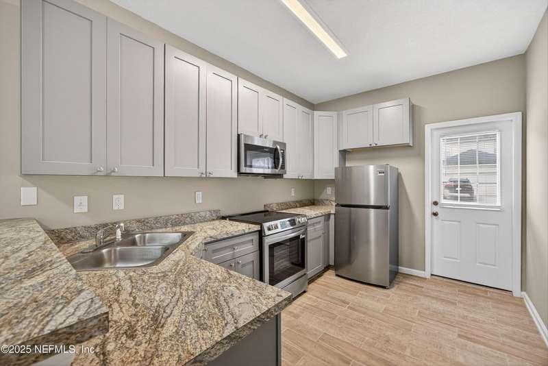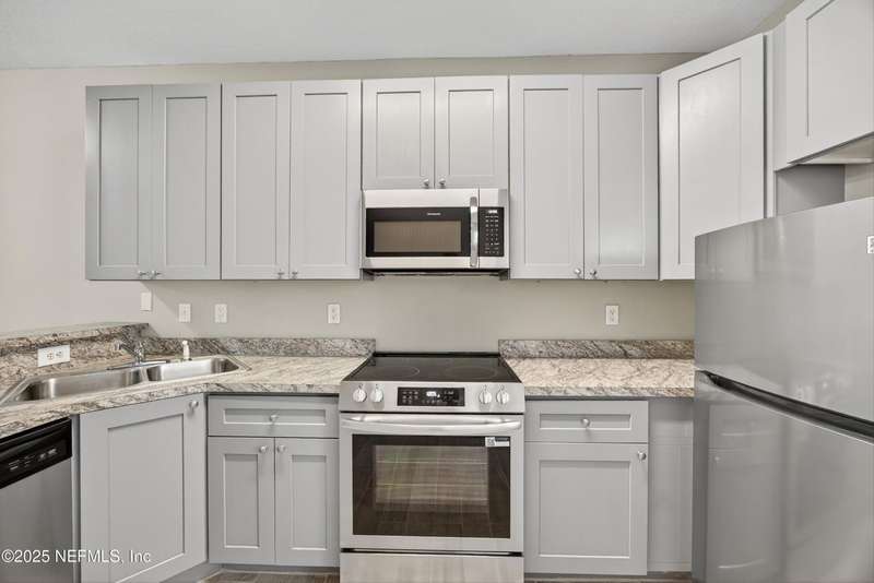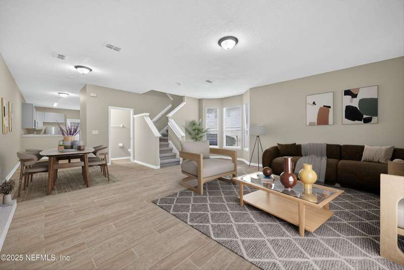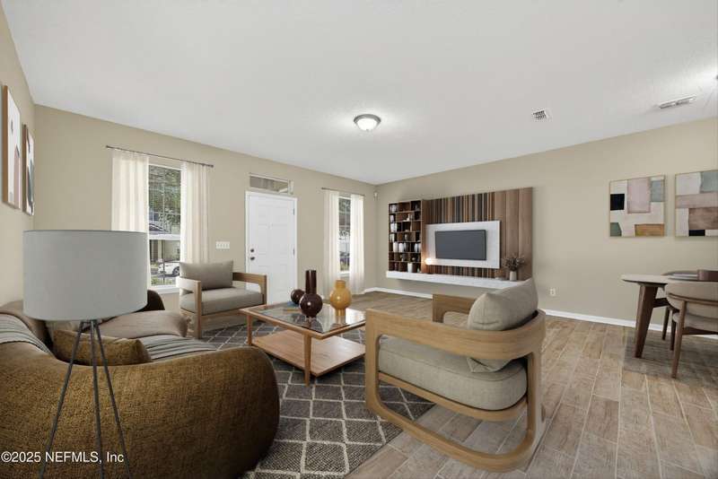 This renovated corner unit townhome features 3 bedrooms, 2.5 baths, and a 1-car garage in Plantation Village of Orange Park. The home offers a freshly painted interior with new stainless-steel appliances, tile, carpet, window blinds, and upgraded grey kitchen cabinets. The HVAC was replaced in 2023. The floor plan connects the kitchen to the dining area and living room. All bedrooms are on the second floor for privacy. The primary suite includes a tray ceiling, two closets, and an ensuite bath with dual vanities and a walk-in shower. There are two additional bedrooms suitable for guests or family. With no CDD fees and yard maintenance included, this property provides excellent value and convenience. Ideally located near Oakleaf Town Center, the Brannan Field Connector, shopping, dining, and entertainment this home offers the perfect blend of comfort and lifestyle. Welcome Home!