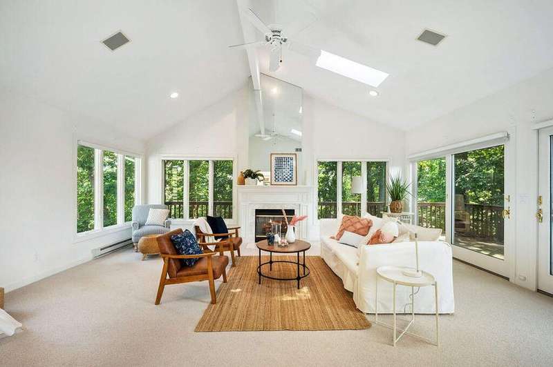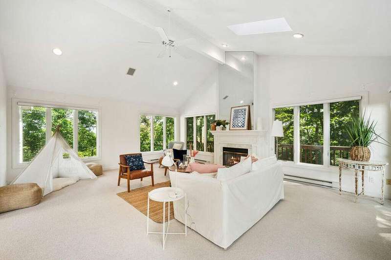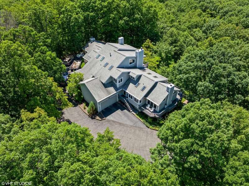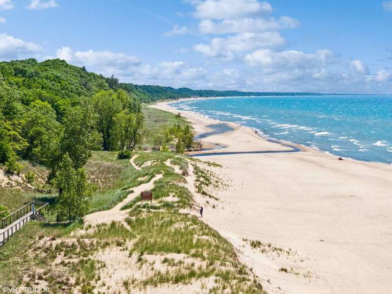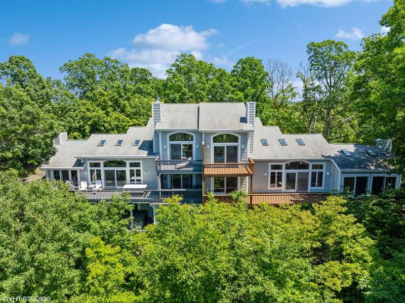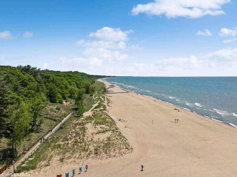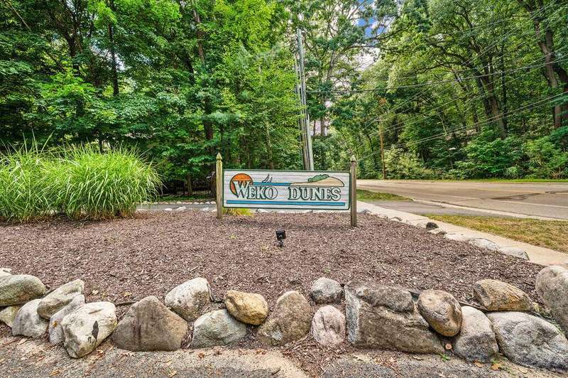 Tucked away at the highest point of sought-after Weko Dunes Community, this townhome offers a rare combination of privacy, elevation and natural beauty. Enjoy a serene setting with tree-lined streets and views of Lake Michigan during the changing seasons, a perfect retreat in Southwest Michigan, just a 90 minute drive from Chicago. The main level features an open concept design with soaring 18 ft. ceilings, abundant natural light, a cozy fireplace and a kitchen designed for entertaining. Upstairs, a spacious en-suite bedroom opens to a private balcony with views of Lake Michigan. The finished walk out basement features a family room with a fireplace and built-ins perfect for family and friends. There are two bedrooms and a full bathroom. Take advantage of Weko Dunes resort style amenities-swim in the sparkling pool, play a match on the tennis or pickleball court, or play ball at the basketball court. Located just steps from Weko Beach and the renowned Lake Michigan Wine Trail.