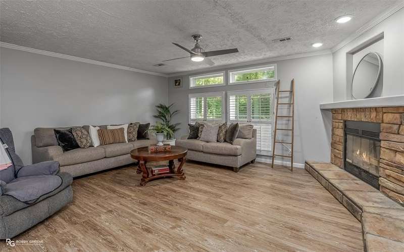 Welcome to 8287 Jefferson Paige Road, a home that perfectly combines comfortable living with wide-open outdoor space. Featuring 3 bedrooms, 2 bathrooms, and 1,792 square feet, this property sits on three beautifully combined one-acre parcels—giving you approximately three acres of privacy, space, and opportunity rarely found so close to town. Step inside to a warm and inviting entry that flows seamlessly into a spacious living room anchored by a stunning stone fireplace and custom built-ins. Natural light pours through large windows, highlighting the neutral tones, crown molding, and updated flooring throughout. The open floor plan offers an ideal setting for both relaxing evenings and lively gatherings. The kitchen is designed for everyday living and entertaining, with abundant cabinetry, a center island, modern appliances, and plenty of counter space. It flows effortlessly into the dining area, creating a natural gathering place for family and friends. The primary suite offers a retreat of its own, complete with a large spa-like bathroom featuring dual vanities, a soaking tub, and a separate shower. Secondary bedrooms are generously sized, providing flexibility for family, guests, or a home office. Outside, the covered front porch with its charming exposed beams is a perfect place to unwind, whether sipping morning coffee or watching the sun set. The expansive acreage gives you endless possibilities, from gardening and outdoor recreation to adding workshops or future amenities. A spacious concrete pad, storage sheds, and a charming brick outbuilding add practical value, while the fenced yard and mature trees create privacy and peace. Located in a quiet setting just minutes from I-20, downtown Shreveport, and Cross Lake, this home provides the best of both worlds: a serene country feel with easy access to city conveniences. With move-in ready interiors, spacious outdoor living, and three full acres to enjoy, Call today to schedule your private showing of this home!