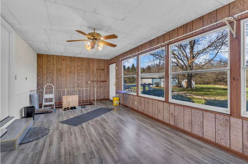 4BR/2BA Quad Level Home situated on 20 acres of hardwoods, pasture area & wooded meadow. Fantastic Hunting Property! A 24x32 Pole Barn and an oversized 2+ Car Garage. Enter into 4 Season Room that opens to kitchen & dining room. Upstairs you will find 2BR/1BA and Living Room. Lower Level has Family room w/gas fireplace, 2BR/1BA and Laundry Room. The Basement has utility room; storage space & built in safe. Includes a portable generator. Metal Roof new in 2000, has transferrable warranty w/20 years left. 7500 Electric start Portable Generator included. Furnace replaced in 2014. Close to Lakes, McCourtie Park, and Restaurants yet tucked away on your own piece of paradise! Take US-12 to Round Lake Rd (close to Jerome Country Market).
