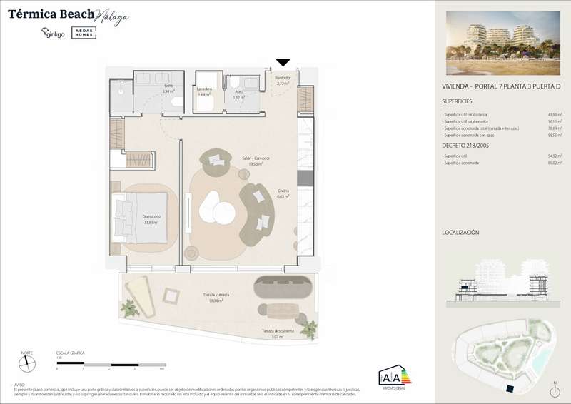 Térmica Beach, located on the beachfront of the new golden mile of the city of Malaga, in an enclave to enjoy the sea, with spectacular views. It stands out for its idyllic and strategic location in the fashionable city. Strategically connected to Malaga Airport, the historic centre, golf courses and marina. Thanks to its climate, it allows us to enjoy the beach all year round, leisure, gastronomy and relaxation. Buy with us at the same price as with the developer.