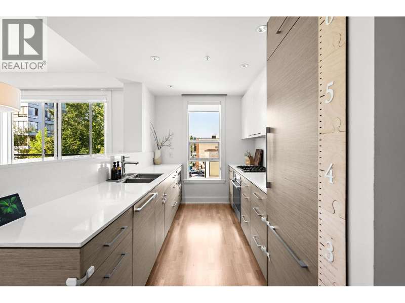 Perfect lifestyle for downsizers or growing families at Kerrisdale Gardens. BRIGHT & SPACIOUS 2-bed+den CORNER home with OVERHEIGHT ceilings, floor-to-ceiling windows, A/C & TWO private balconies overlooking stunning green canopy & North Shore mountains. Open chef´s kitchen with custom European-style cabinetry, quartz counters, gas cooktop & integrated appliances. Open plan flows to dining with built-in shelving & airy living space perfect for entertaining. Primary bed with SPA-LIKE ensuite featuring marble vanity & glass shower. Flexible 2nd bed+home office/den ideal for WFH. Boutique building steps to Arbutus Greenway, Kerrisdale´s best restaurants, cafes, parks & top schools (Point Grey & Quilchena). Easy access to UBC & downtown. EV Parking & Storage. Pets OK. Low-maintenance luxury living. (id:58403)