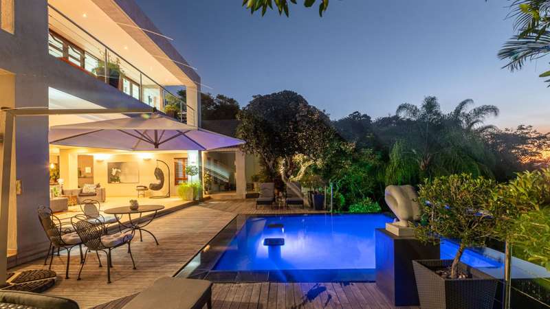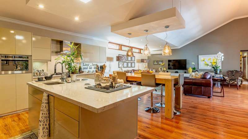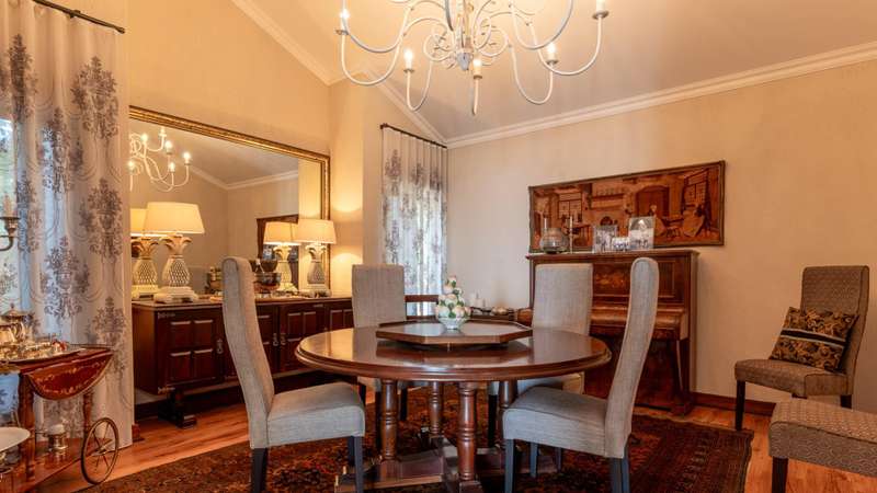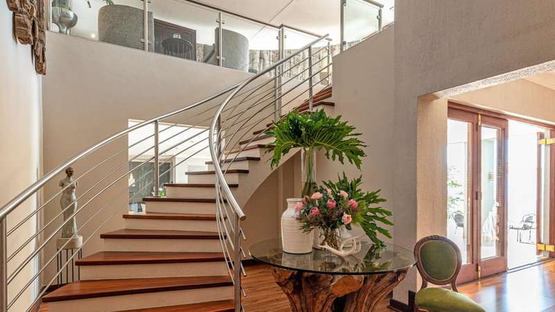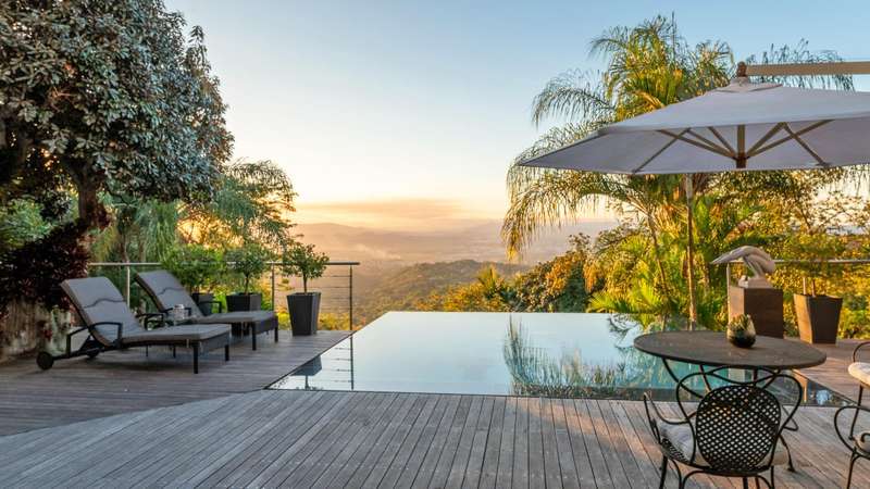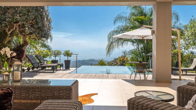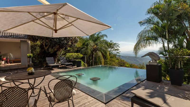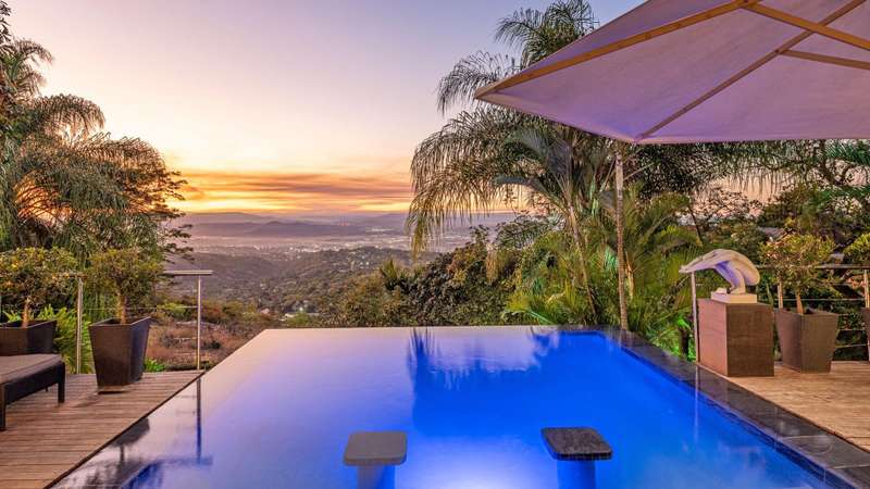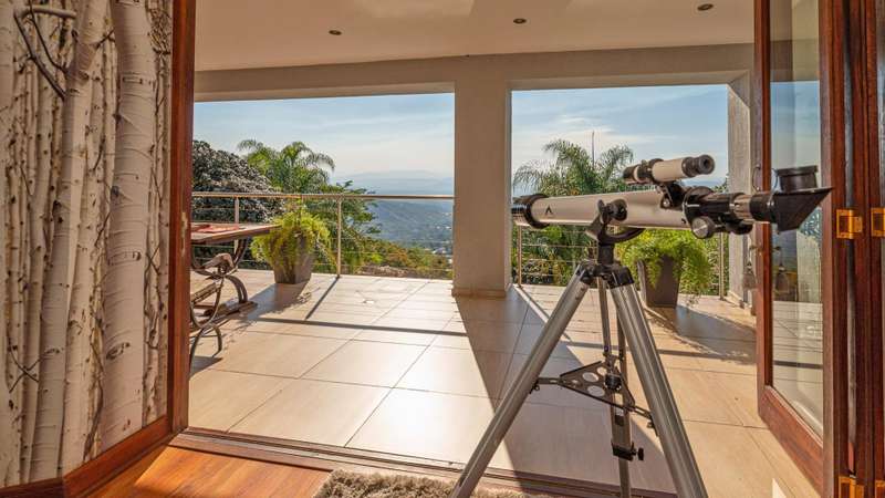 The best view in Nelspruit Nestled in the picturesque landscape of Steiltes, Nelspruit, stands a contemporary masterpiece ?Çö a stunning 4-bedroom, 3-bathroom mansion that epitomizes luxury living. Boasting sleek architectural design, this residence exudes modern elegance. All bedrooms are on ground level as well as the lounge, dining room and the vast covered patio overlooking the infinity pool. Adjacent to the gourmet kitchen, adorned with state-of-the-art finishes and appliances, which is a culinary haven for aspiring chefs, is the TV room that opens onto the main patio, perfect for all year round entertaining. Upstairs is a spacious equipped cinema and a sunny studio, opening onto another patio with breathtaking Lowveld views. This family home offers ample space for relaxation and entertainment. The large home office can easily be converted into a flatlet, if desired. A double garage, storeroom and maids' facilities cater to practical needs. A second entrance allow for more garages to be added. However, it is the panoramic vistas that truly elevate this home to unparalleled heights. Perched in the heart of Nelspruit, it commands the most coveted view, an ever-changing canvas of natural splendour that inspires awe and tranquillity. This mansion isn't just a residence; it's a sanctuary of refined living, where every moment is adorned with beauty and grace.