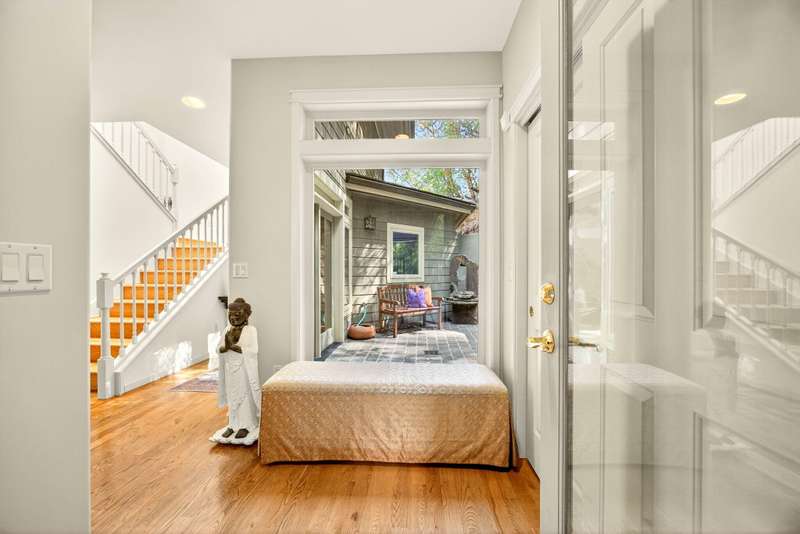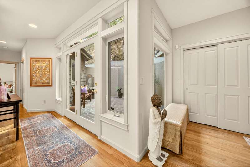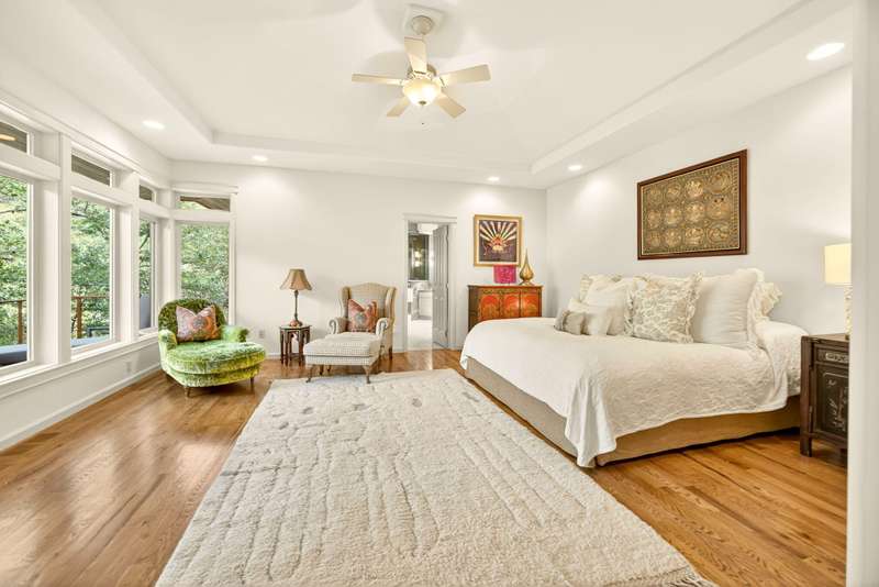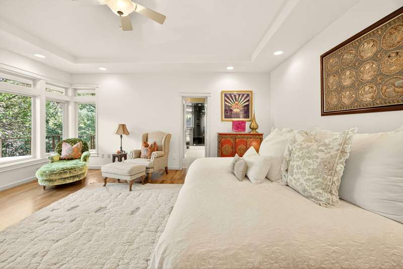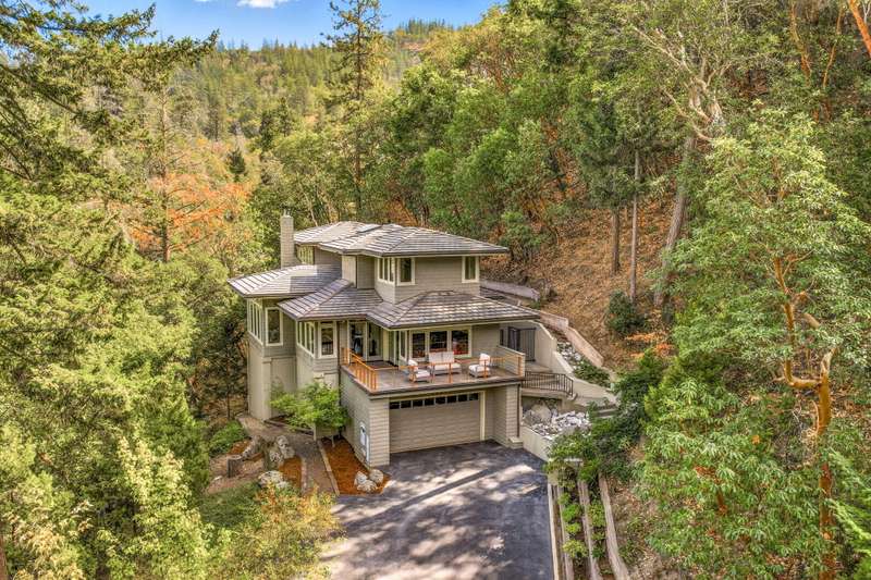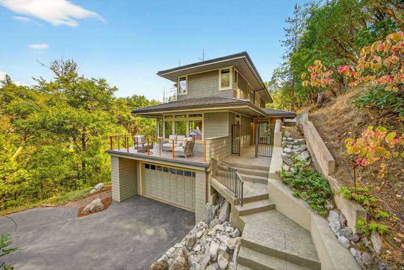 Private tranquility in the treetops 4 min. to downtown Ashland. Views of Lithia Park w/soothing sounds of Ashland Creek flowing. Style meets sophistication on this beautiful architecturally designed home w/over ½ acre. $400K in new updates in the last 2 years. Private gated courtyard entry. Hardwood floors throughout, tile bathrooms floors, over 100 windows to bring in abundant light & cement balconies w/copper railings w/unobstructed views. Many trails close by. New massive artisan river rock wood burning fireplace in great rm. Chef's kitchen w/built in refrigerator, 6 burner gas cook top, dbl ovens, wine refrigerator, granite counters w/lg island. Formal dining & breakfast rm. 3 bdrms + lg office/meditation rm; 2 bdrm en-suites; Primary w/2 walk in closets, quartz counters, glass sinks, steam shower, air jetted tub, water closet & private balcony. 4 car garage, 2nd courtyard patio off entry. Home allows for an abundance of natural light w/vaulted ceilings & skylights.