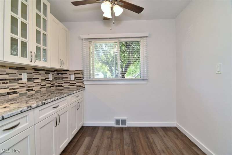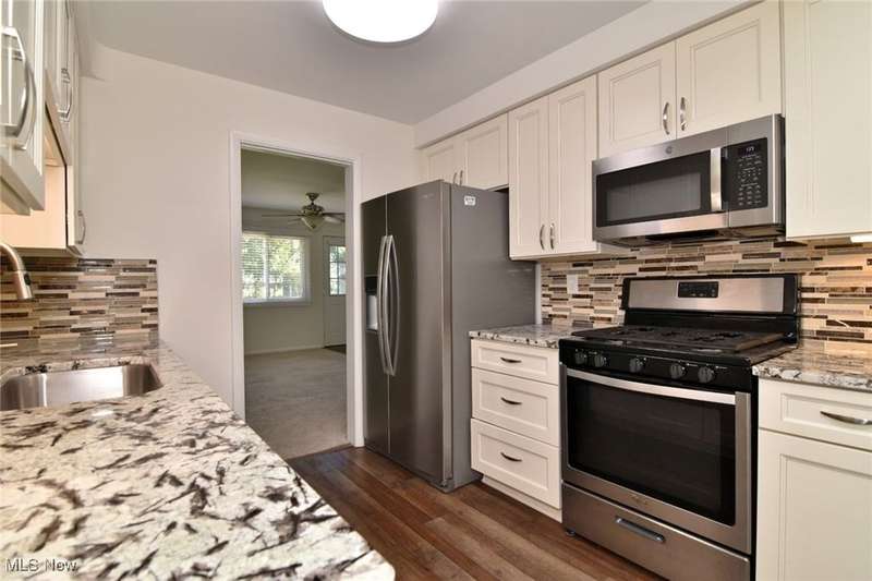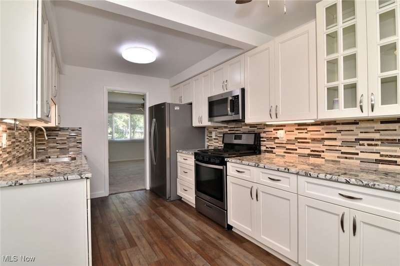 Beautiful, updated and well cared-for ranch style home in the city of Lyndhurst. Total of three bedrooms on the main floor and one room on the lower level that can be used as a bedroom or office. There are two and a half updated bathrooms; one and one half on the main floor, and one full in the lower level. Updated kitchen with new granite counters and all appliances included. Washer and dryer are in the lower level, newer HVAC, and hot water tank. Private, nicely fenced-in backyard with stone patio on one of Lyndhurst's lovely streets. Close to the new Richmond Heights apartments and shopping center development, Bell Oaks. Under cabinet lighting in the kitchen creates a pleasant, warm ambience! Must see. Show and sell.