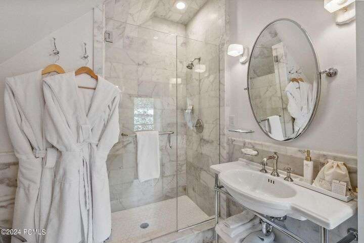 Imagine opening the door to your new residence and stepping back in time. Currently operating as a bespoke boutique hotel, this crown jewel can effortlessly be transformed into a stunning single-family masterpiece. Originally built in 1889 as Park City's first schoolhouse during the mining boom, this hand-carved limestone building has a rich history. It has served as a dance hall in the 1950s and, more recently, a Bed and Breakfast before the current owners discovered its charm. Recognizing its character, they reimagined it, bringing it to life as a Paris-meets-Park City hotel beloved by discerning guests. Now, there's a once-in-a-lifetime opportunity to own this exquisite property. With easy simple adaptations this vibrant hotel can be converted into a distinguished home. Alternatively, you can keep the hotel operational and enjoy a private pied--terre in the top-floor penthouse suite. Spend your days exploring the shops and savoring the delights on Main Street, just one street below, allowing you to be in the heart of the action while still enjoying quiet, private nights at home. Or, take to the mountains for a day on the slopeswhile not technically ski-in/ski-out, with the Quit' N Time trail just 150 steps away, providing access to the Town Lift, you're much closer than parking at the base and walking to the chairlifts at PCMR! Friends and family will be enchanted by each picturesque room, designed for comfort and beauty. Each room is its own jewel box, carefully curated to be warm and inviting. With ensuite bathrooms, family and guests will enjoy privacy while staying together. Bask in the rays of Utah, one of the sunniest states, as you lounge by your private pool and spa. It's the perfect place for an easy morning swim or a refreshing afternoon dip. Gather for cocktails and games in the grand living room, anchored by a magnificent fireplace adorned with a gold antique mirror rescued from a Parisian opera house and lovingly restored to its former glory.