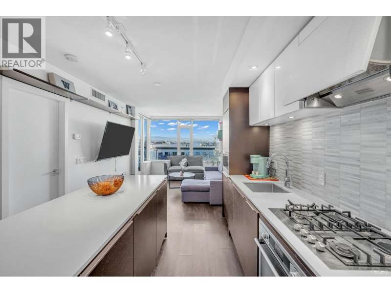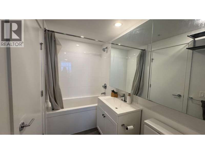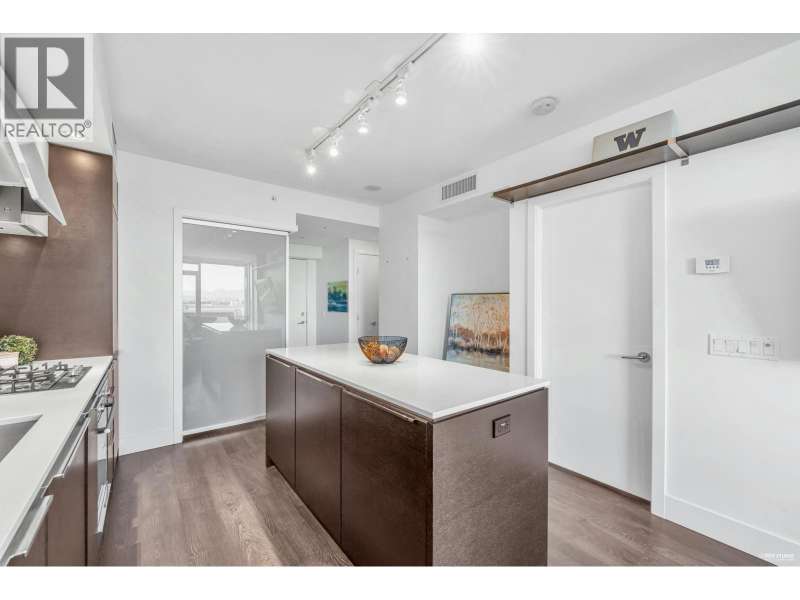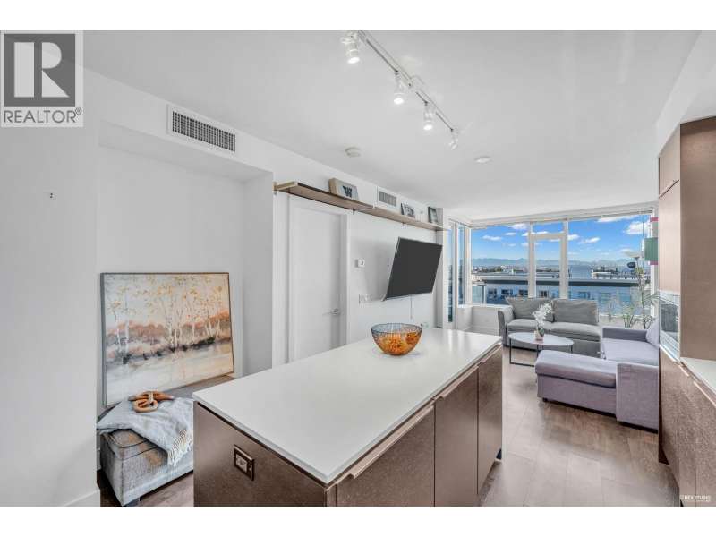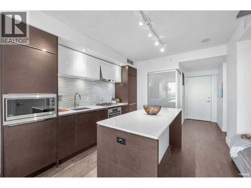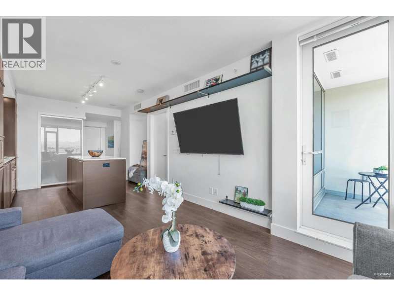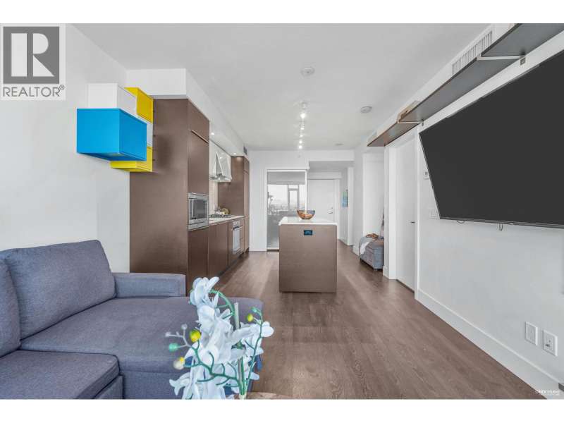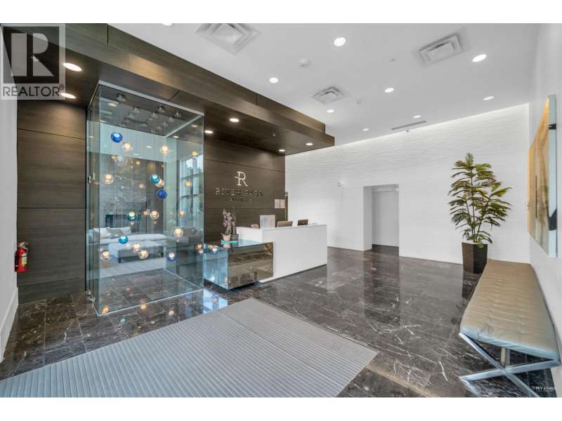 Welcome to River Park Place I by Intracorp! This well-maintained 1 Bed + Den unit with stunning Northeast-facing views of the Fraser River, Mountains & City! Features an open-concept kitchen with island, fully integrated appliances, stone countertops, A/C, wide plank laminate floors & large covered balcony. Spacious layout with semi-ensuite bath & generous living space. Amenities include concierge, gym, basketball court, theatre, study & rooftop BBQ area. Steps to Olympic Oval, T&T, shops, restaurants & Lansdowne SkyTrain. Great home or investment! 1 locker and no parking. (id:58403)