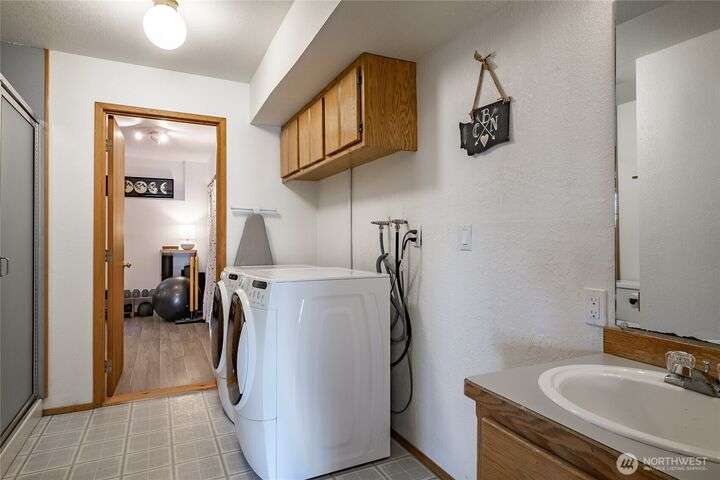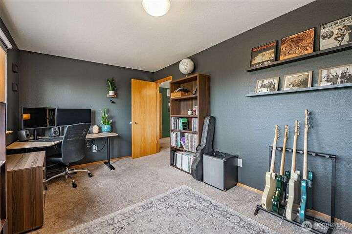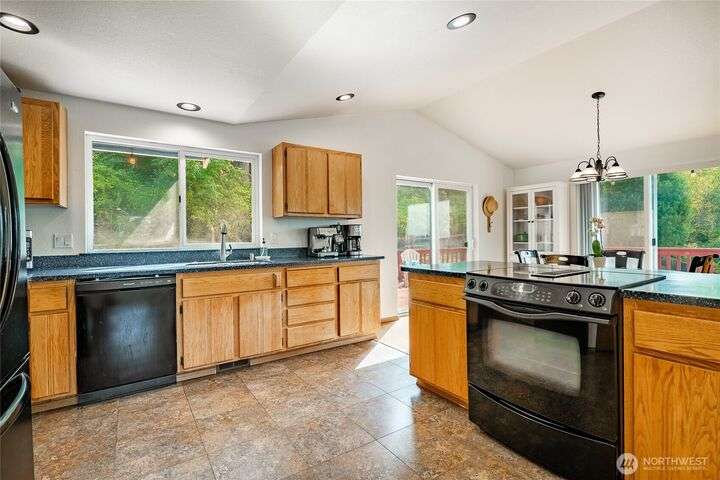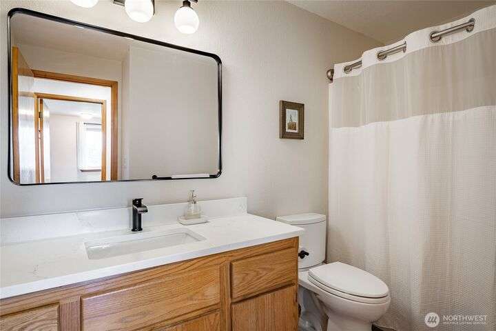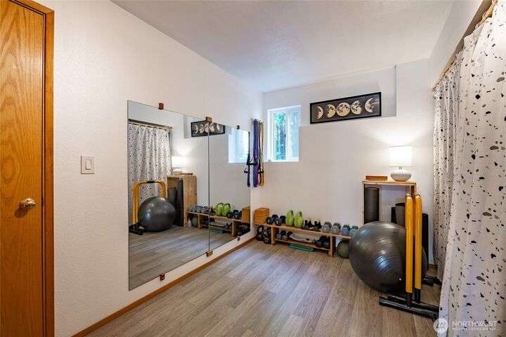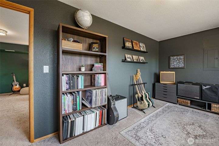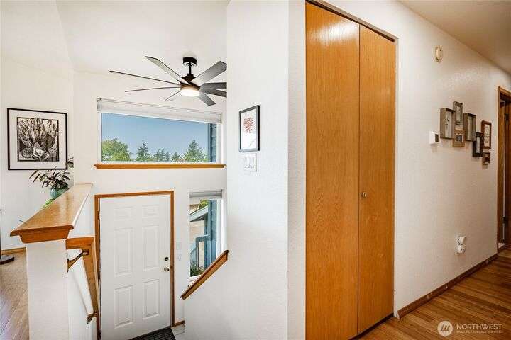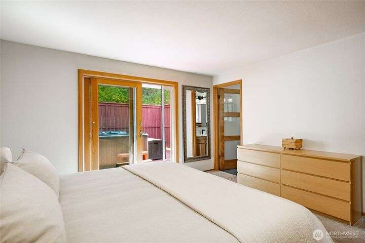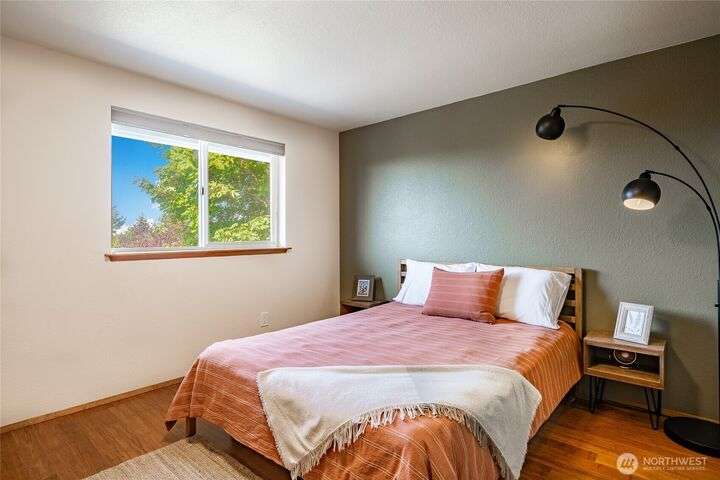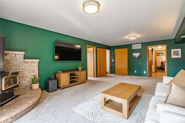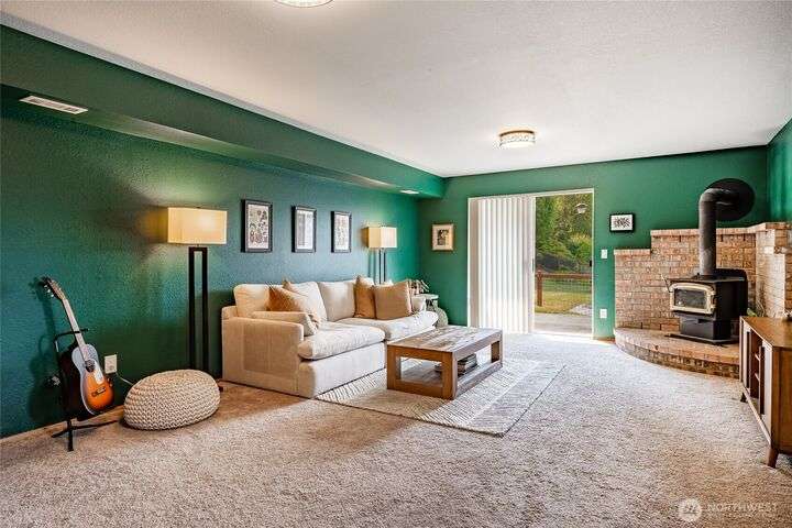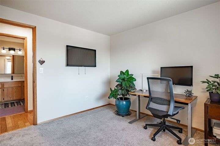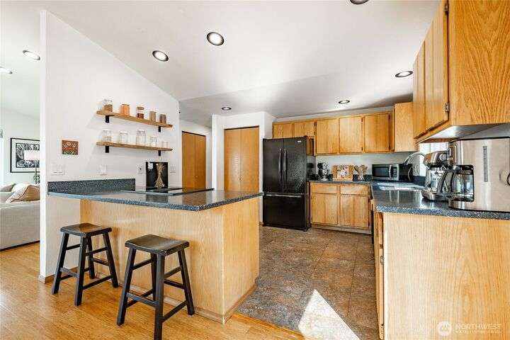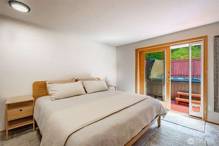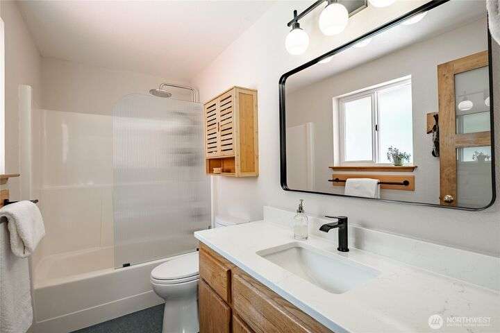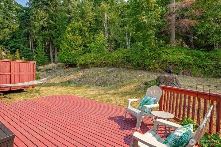 Revel in comfort and peaceful living in this hilltop home with stunning surroundings. The living room’s vaulted ceilings and bamboo flooring create an inviting, light-filled space. The open kitchen features easy-care countertops, and sleek quartz finishes add a touch of elegance to the bathrooms. Just off the primary suite, step into your private hot tub and unwind. Practical updates include a high-end heat pump, hot water heater, and brand-new carpet. Bonus spaces throughout offer flexibility for work and play. Oversized garage has ample space for storage or a workshop. Located minutes from Barkley Village and Bloedel Donovan Park, this home balances serene living with easy access to trails, shops, and dining.