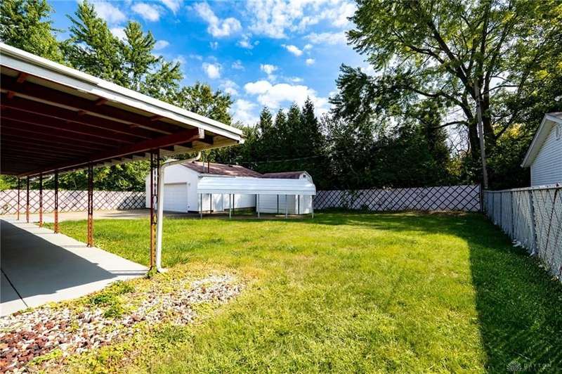 Exceptional 3-bedroom, 2-full-bath expansive ranch that just hit the market. This property is a must-see, especially for car or motorcycle enthusiasts, thanks to its impressive garage capacity. The home features a 2-car attached garage, an extended driveway, an additional 2-car detached garage, and a convenient carport. This setup offers ample space for vehicles, storage, or workshop needs. Inside, the owner has completed numerous significant updates in 2023, including the replacement of the water heater, garbage disposal, both garage door openers, French doors, storm doors, interior doors, and the refrigerator. The furnace and air conditioning systems are also newer, ensuring comfort and peace of mind. The outdoor space is perfect for entertaining, with a covered back patio ideal for barbecues, and a large living room inside that provides plenty of space for gatherings. The location offers superb convenience, with close proximity to Wright-Patterson Air Force Base, Wright State University, major interstates, and a short commute to a variety of dining and shopping options. Don't miss this opportunity to own this fantastic Fairborn find!