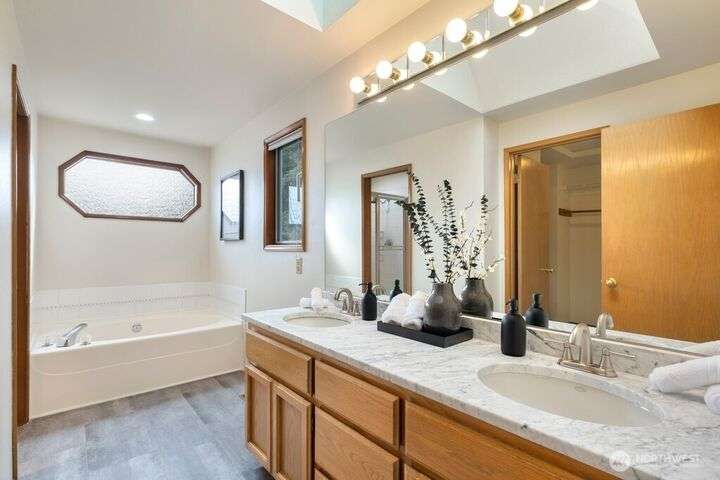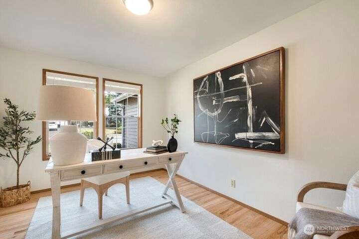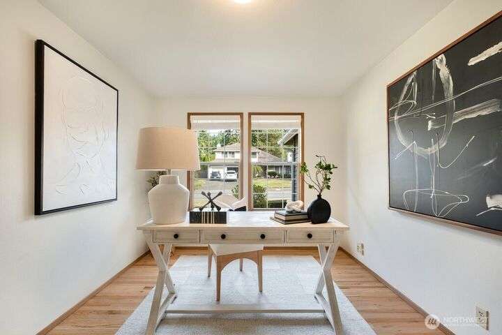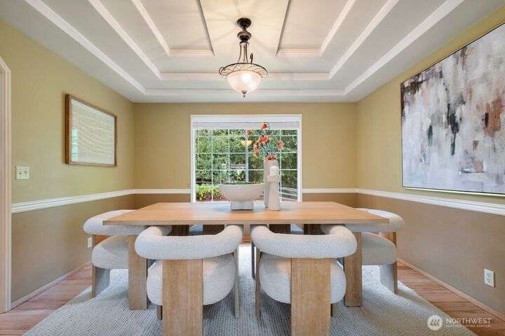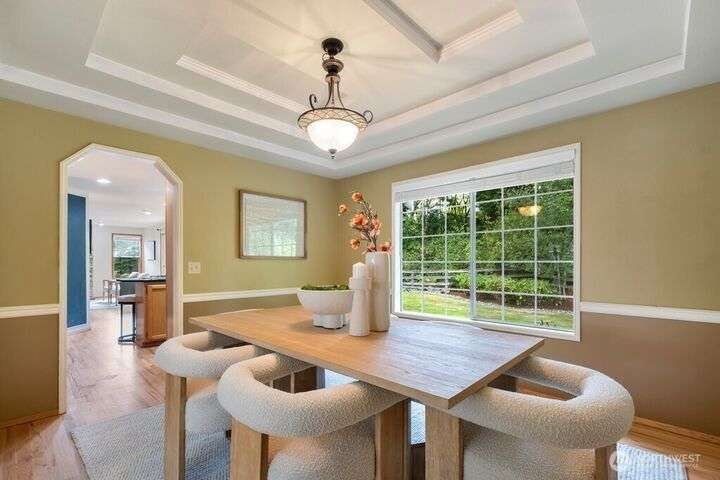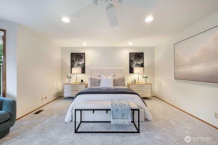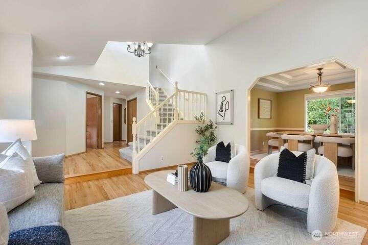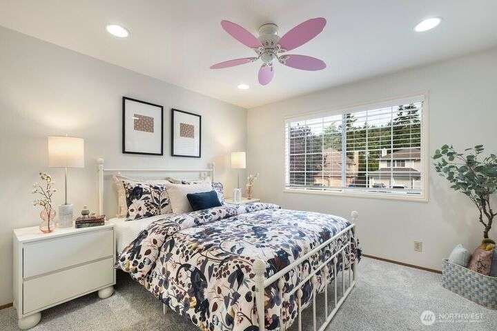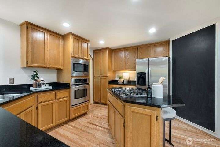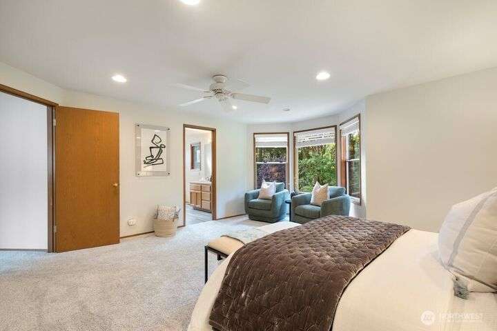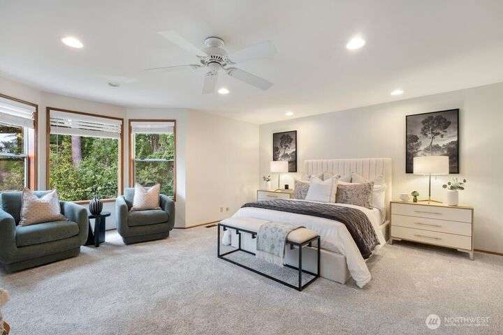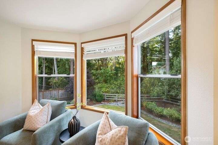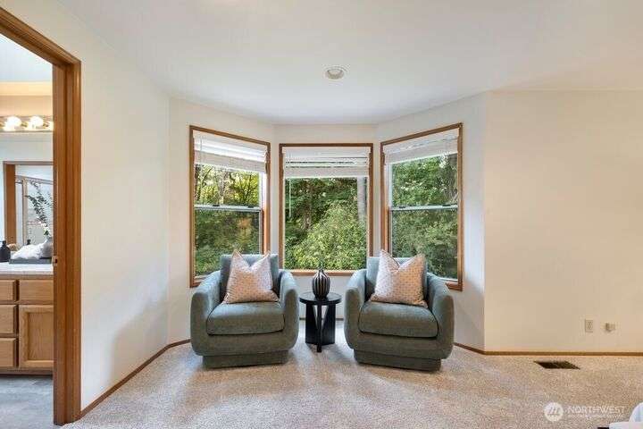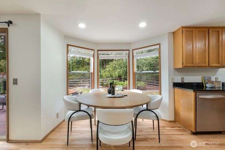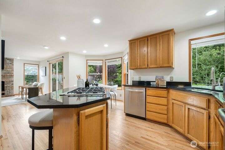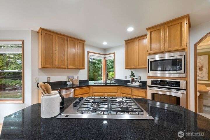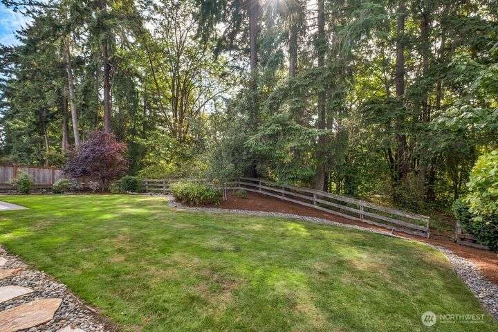 Peaceful meticulously kept home radiates warmth & features a newer roof, fresh interior & exterior paint, new carpet, refinished hardwoods & charming details. The open kitchen offers granite counters, stainless appliances & gas cooktop. Generous light & bright living/dining spaces w/vaulted ceiling, sculpted doorways & inset ceilings. Spacious bedrooms + relaxing spa-like 5-piece primary suite w/tranquil view. Huge flat yard backs to a greenbelt w/patio & gas bbq hookup perfect for entertaining, pets & playtime. Lg 2-car garage w/tons of storage + a dedicated shop. Well located close to Factoria, Newcastle, Golf Course, great parks, food, shops, services, TOP SCHOOLS, + easy access to I-90, I-405, transportation & more. Love where you live.