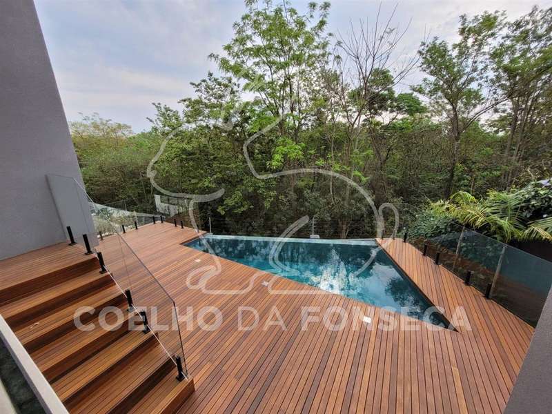 Quatro belas suítes, elevador, piscina de borda infinita em ampla varanda com vista sensacional para a área de preservação do condomínoi.No andar de baixo possui lavanderia, academia fitness, dormitório de empregados e garagem para oito carros.Projeto com geração de energia fotovoltaica,Pontos de recarga para seu veículo elétrico/híbrido,conforto térmico e acústico, ar condicionado em todos os ambientes.O imóvel perfeito para toda a vida! Excelente!