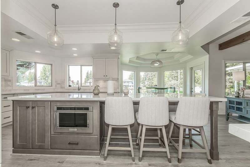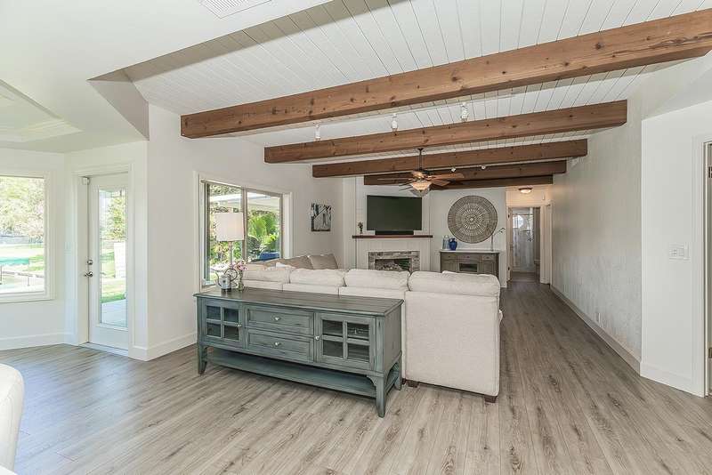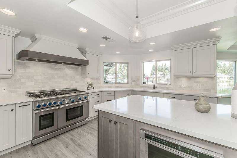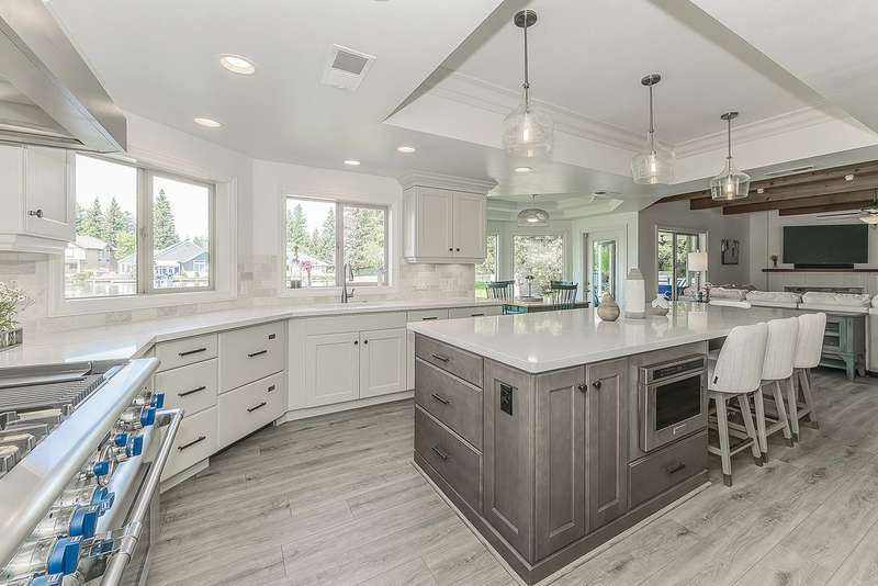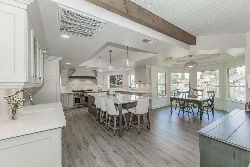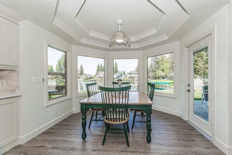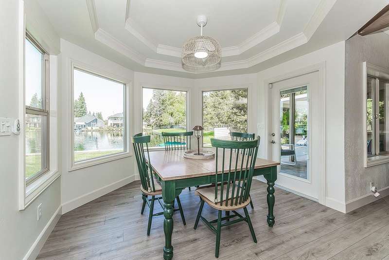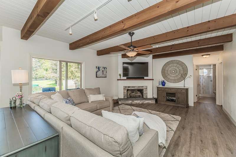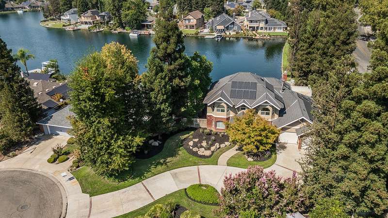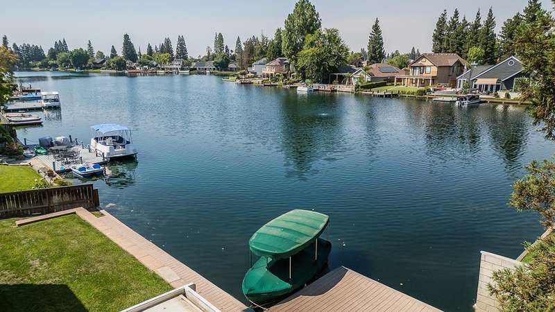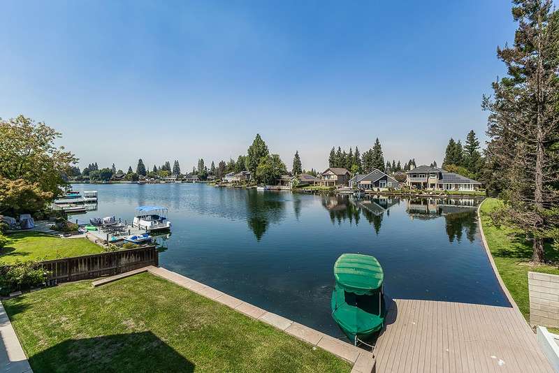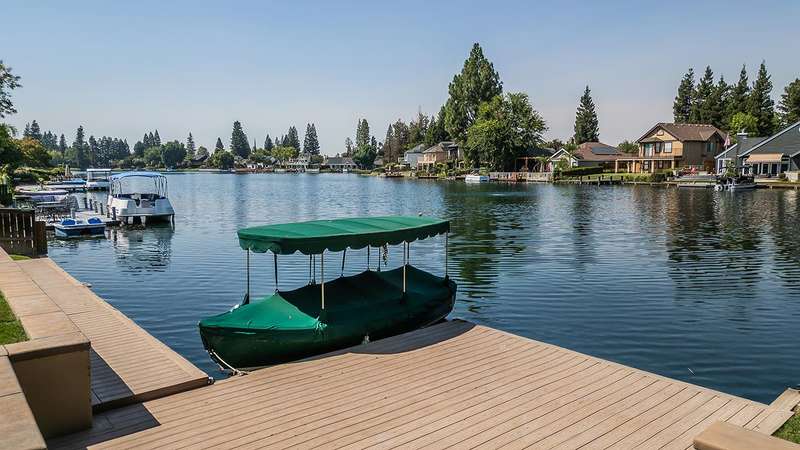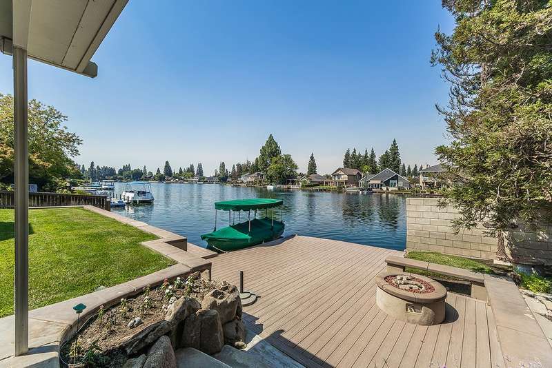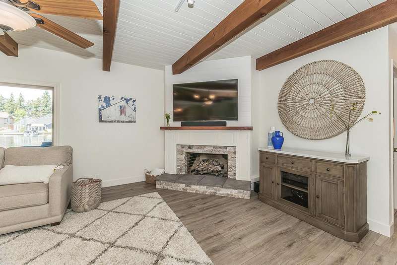 LAKEFRONT living that feels like a vacation everyday! This beautifully updated 4 bedroom, 3 bathroom home offers stunning lake views from nearly every angle. Step off your oversized deck to hop on a sunset cruise or take peaceful morning boat ride to start your day.Inside you will find a high end remodeled kitchen that is magazine worthy. Dishwasher drawers, ice maker, built in refrigerator, and a Thermador gas range will make you want to host the next dinner party!Modern upgrades include owned solar, newer HVAC and water heater, and brand new plank flooring!Downstairs is an isolated bedroom and full bathroom in addition to the living room, dining room, and large multifunctional bonus room.Upstairs is the 3 sizable bedrooms and the laundry room. The primary suite has a large deck to capitalize on that beautiful view. The remodeled bathroom includes a claw foot tub and a state of the art built in sauna!Outside is your private retreat: a fantastic deck overlooking the lake, outdoor kitchen, firepit, tranquil waterfall, and garden set up. An oversized side yard could be used for excellent storage or a future pool! A large space with many options! Whether relaxing, entertaining, or heading straight out on the water, this home combines everyday comfort with resort style living!