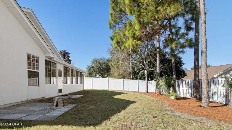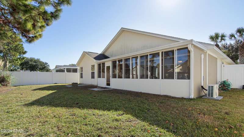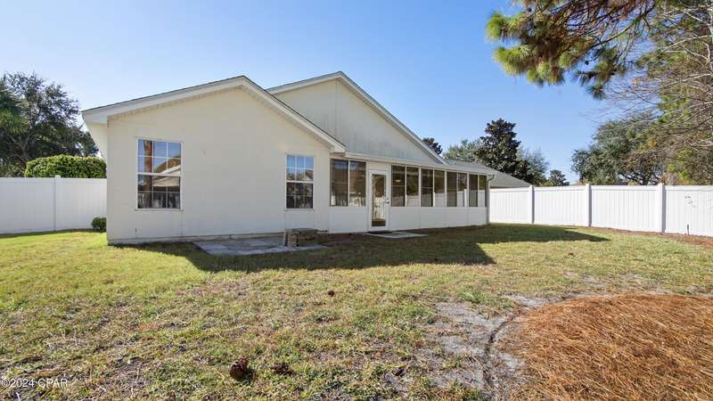 Welcome to this charming 3-bedroom, 2-bathroom home with office, located in the highly desirable Palmetto Trace neighborhood. This home offers the perfect combination of comfort, convenience, and style. This home features fresh, modern updates throughout the home with brand-new interior paint and luxurious new LVP (Luxury Vinyl Plank) flooring. Also you enjoy the large 17x28 Florida Room that is both heated and cooled, making it an ideal space for year-round use as a sunroom, office, or entertainment area. This home is located Nestled next to Pier Park, offering endless shopping, dining, and entertainment options, plus the proximity to Frank Brown Park for outdoor activities. You are only15 minutes from the Panama City Beach airport.This home is a perfect opportunity for those looking to enjoy both a peaceful residential community and close access to all the best local amenities. Don't miss out on this opportunity!