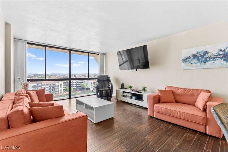 Located just minutes from the Las Vegas Strip and directly across from UNLV, this 9th-floor unit in the gated Wimbledon Tennis Club offers unbeatable convenience and vibrant city living. Featuring floor-to-ceiling windows in the living room, enjoy sweeping views of the iconic Las Vegas skyline right from your home. This 2-bedroom residence sits within a secure, key-access building with on-site staff and 24-hour security. Residents have access to resort-style amenities including a pool, spa, fitness center, recreation room, outdoor BBQ and picnic areas, and tennis courts. Whether you're looking for a full-time home or a centrally located investment property, this is an ideal opportunity in the heart of Las Vegas.