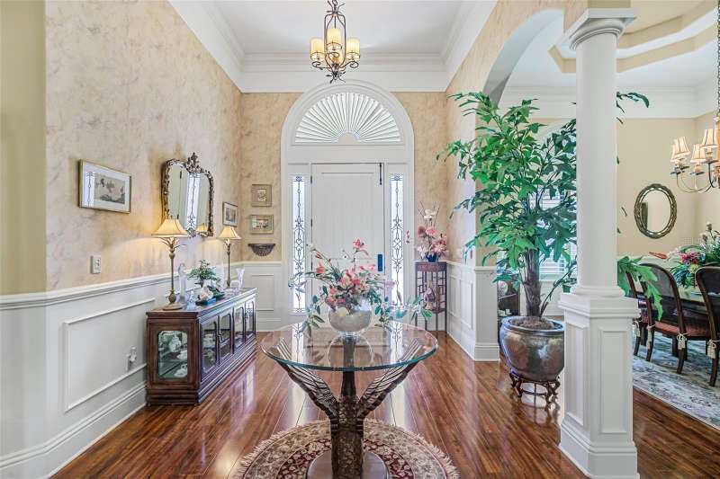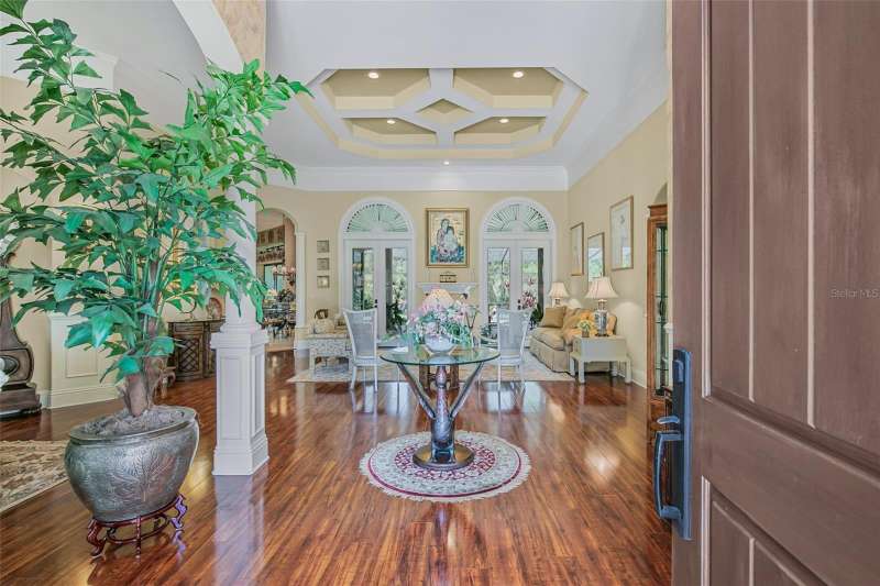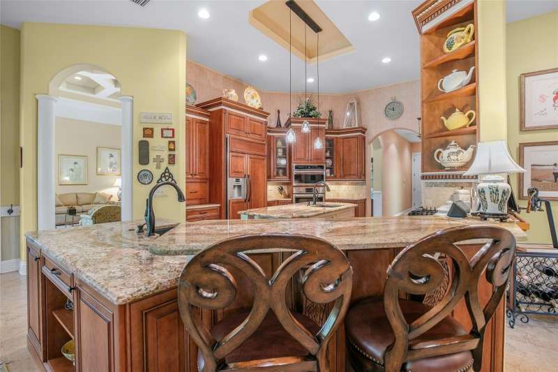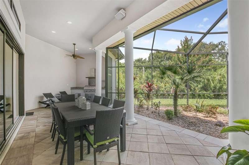 Welcome to an exquisite home on a quiet cul-de-sac in the upscale 24-hour guard-gated community of Hammock Dunes. Experience the pinnacle of luxury living in this 3,984 sq ft custom-built residence that sits on just over a half-acre. It has 3 bedrooms, 3.5 baths, and a versatile den/office. From the moment you arrive, you’ll be captivated by its impressive curb appeal and that will set the tone for the exceptional interior design. Step inside to witness architectural sophistication and soaring coffered ceilings that add depth, character, and a sense of grandeur to each living space. The formal living and dining rooms provide ample space for entertaining, highlighted by a gas fireplace and custom niches for a refined, open feel. Just off the grand foyer, you’ll find a spacious den/office featuring a custom built-in desk and bookcases. Perfect as a private workspace or library, this room offers exceptional versatility and can easily be transformed into a comfortable fourth bedroom. The expansive master suite offers a true private retreat with dual custom walk-in closets and a spa-inspired bath featuring an oversized walk-in shower and soaking tub for the ultimate relaxation. The family room off the kitchen has a distinctive wood ceiling, built-in wet bar, 2 wine refrigerators, custom bookshelves and a gas fireplace which will add warmth to the living areas. The chef kitchen is a culinary dream, showcasing high-end custom cabinetry, granite countertops, center island, premium appliances, and abundant pull-out storage. The expansive windows across the rear of the home fill the interior with natural light while framing serene conservation views throughout the home. Thoughtfully designed for privacy, this home offers separate guest quarters with a private lanai entrance. This space offers the ideal balance of comfort and privacy for guests or extended family. If the inside of the house was not enough, step out to your outdoor private oasis – a screened-in outdoor kitchen and lanai overlooking the peaceful conservation area. Completing this exceptional property is an oversized 3-car garage with ample space for storage, a 250-gallon buried propane tank, a whole house water filtration system, home security system, and a built-in wall safe for all your personal items. No detail was left undone. Beyond the home, the Hammock Dunes lifestyle offers an extraordinary blend of relaxation and recreation. While membership to Hammock Dunes Club is optional, it unlocks a world of amenities, including: two Audubon-certified championship golf courses designed by Tom Fazio and Rees Jones, two clubhouses, formal and casual dining, fitness center with group classes and personal training, pool and splash pad, tennis, pickleball, bocce and amazing croquet courts overlooking the ocean. Homes of this caliber are rare—don’t miss your chance to own this one-of-a-kind residence in one of Florida’s premier private coastal communities.