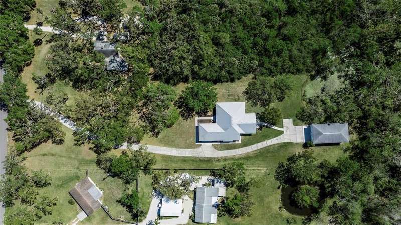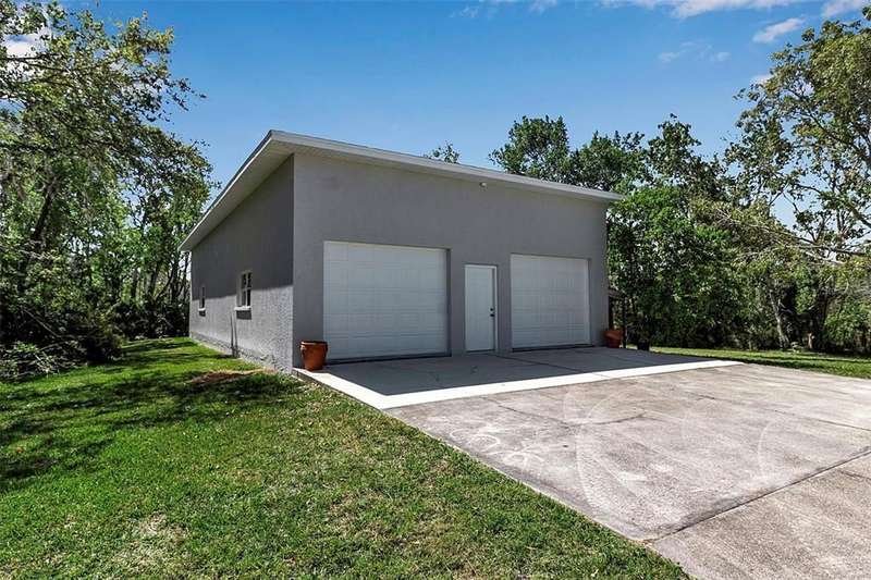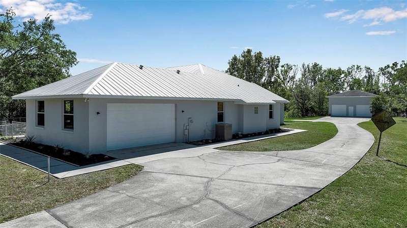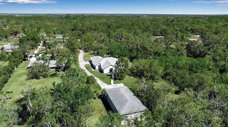 Private 3-Bedroom Estate on 2.34 Acres - Expansive Workshop, Pond & Endless Possibilities! Discover the perfect blend of space, privacy, and versatility in this stunning 3-bedroom, 2-bathroom home, nestled on a secluded 2.34-acre lot with mature trees and a private pond. Set back from the road for ultimate tranquility, this property offers no HOA or CDD fees and is ideally located near I-75, Bradenton, Lakewood Ranch, Sarasota, and Anna Maria Island.Step inside to an open-concept layout with soaring cathedral ceilings and luxury vinyl and tile flooring throughout. The freshly painted interior and exterior provide a bright and inviting atmosphere. The spacious primary suite features French doors leading to the screened porch, a walk-in shower, and a soaking tub. The second bedroom connects directly to the second bathroom, while both bathrooms offer large, walk-in showers. The chef's kitchen boasts ample cabinet and counter space, perfect for meal prep and entertaining.A massive 900 sq. ft. (30x30) backroom with multiple electrical outlets, two exterior doors, one being a sliding glass door to the rear provides incredible flexibility-convert it into an entertainment space, additional bedrooms, or even a mother-in-law suite. Enjoy peaceful mornings on the screened front porch with a ceiling fan, or take advantage of the huge laundry room with built-in cabinets, a sink, an ironing board, and space for a sewing or office area.Additional features include a metal roof with 25+ years of remaining life per a 2023 wind mitigation report, a zoned 5-ton AC and heat pump (2022) with four independent zones for efficiency, a water heater replaced in 2021, and a dishwasher replaced in 2022. The home also features underground utilities, overhead plumbing, and a septic system pumped in 2023. Gas lines are pre-installed for optional propane use, including behind the electric fireplace for a potential gas fireplace. Built 19 above crown elevation for added peace of mind, only 9 was required when built.For car enthusiasts, hobbyists, or business owners, this property includes an attached 2.5-car garage with an opener. PLUS an incredible 60x30 detached block 2 bay workshop/garage with 18-foot ceilings, plumbing, 220V electric, an office area, and a loft-perfect for a car lift or workspace. A concrete driveway with an RV/boat parking pad adds even more convenience. If you're looking for space, privacy, and endless possibilities, this home is a must-see! Schedule your showing today!