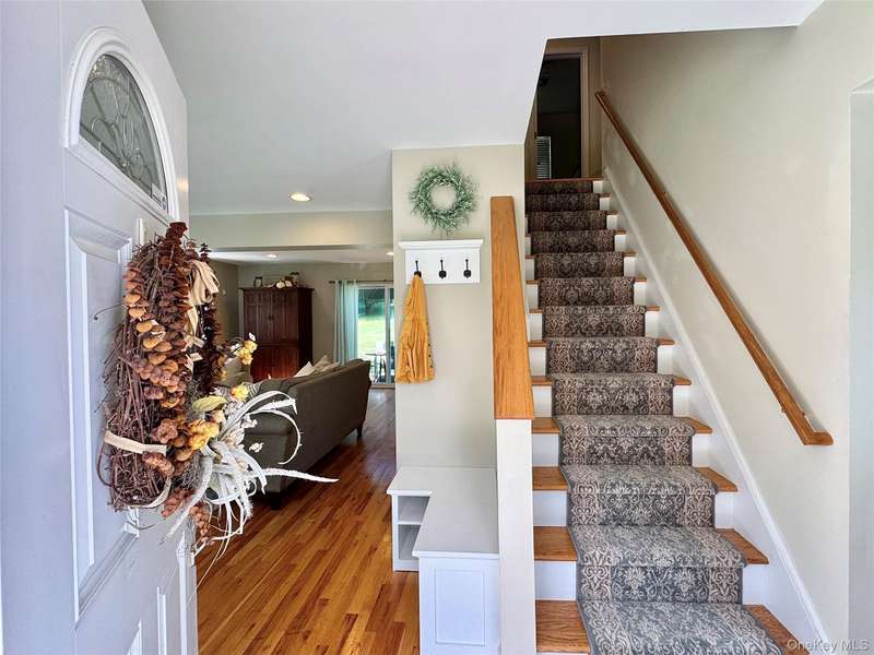 ACCEPTED OFFER 9/18 - Step inside this beautiful colonial and soak in the abundance of natural light with large east-facing picture windows, which complement the beautiful hardwoods throughout the entirety of the home. To your left, a spacious living room, with a fireplace, leading you to a sliding glass door that open up to the back patio and the lush, manicured backyard. To your right, the dining room, kitchen, and the first of three full bathrooms. Just off of the tastefully updated kitchen, you will find a laundry and mudroom with a separate entrance from the front walk, as well as an entry to the generous 2-car garage. Up the stairs, you'll find a large primary bedroom, boasting vaulted ceilings, a walk-in closet, and a private bath. Down the hall you'll find another full bathroom, and the remaining two bedrooms to complete the second floor. This home is also right down the road from multiple access points to the Duchess County Rail Trail, as well as being conveniently located to shopping, dining, and all that the Hudson Valley has to offer! Some recent updates and enhancements include a whole new septic system in 2016, repaving of the driveway in 2017, a new water heater and sump pump in 2021, and a new propane furnace in 2024.