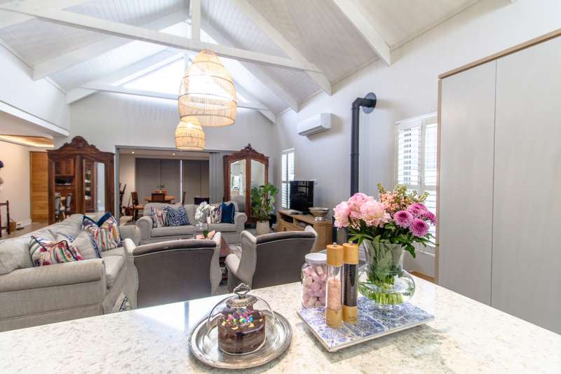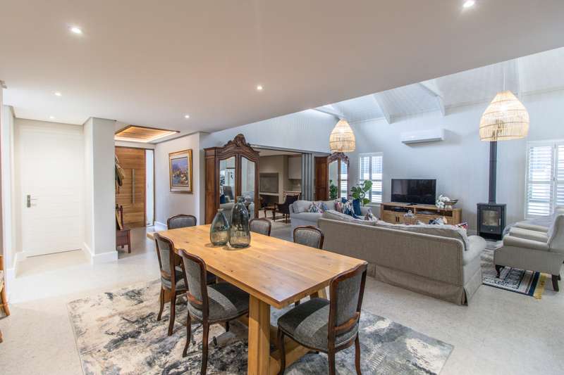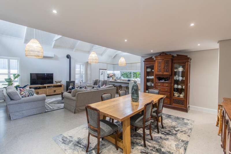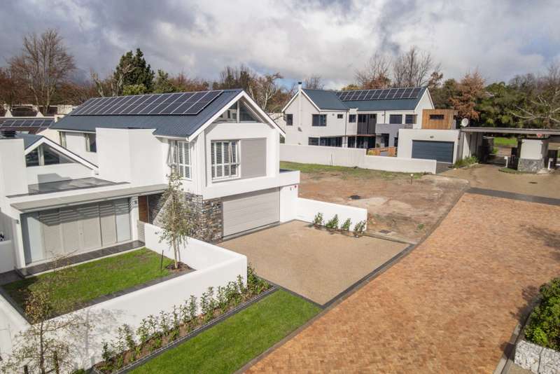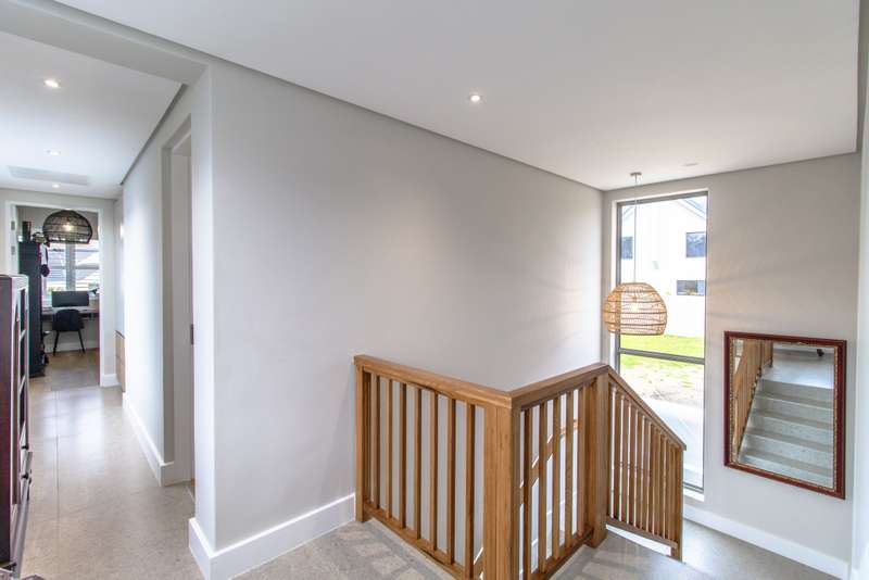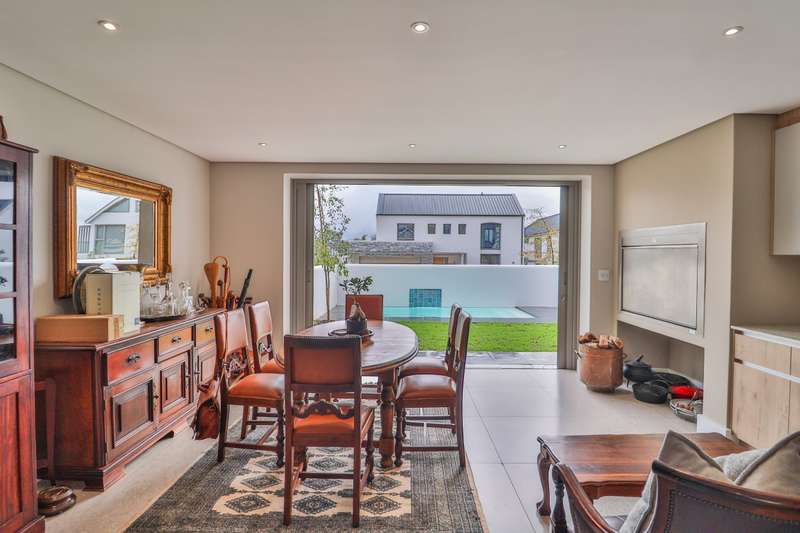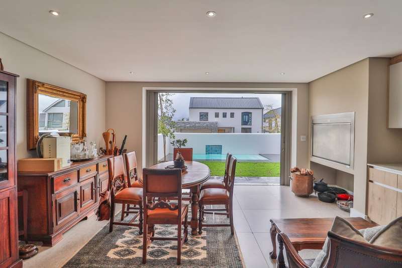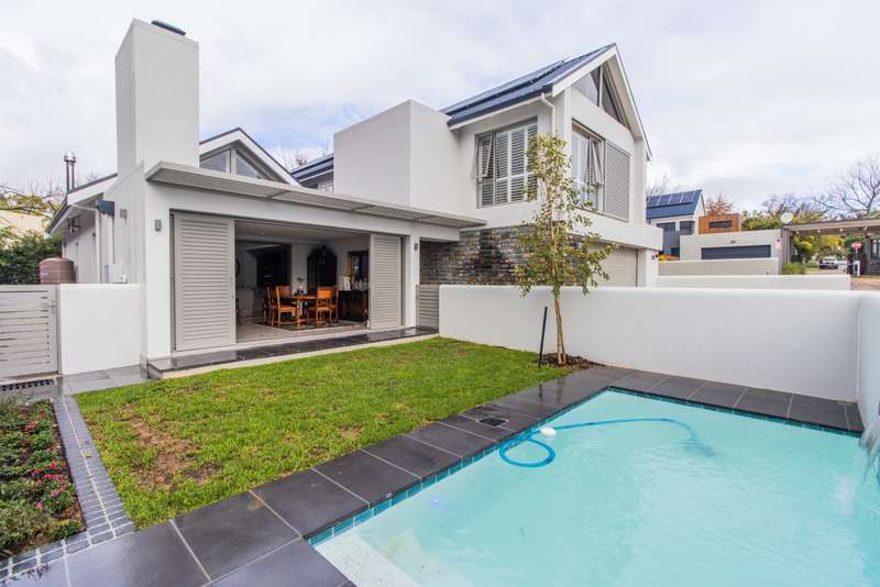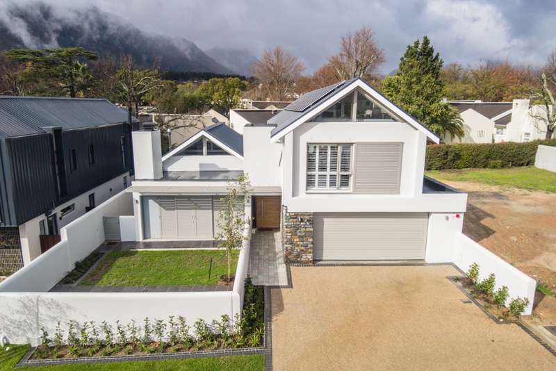 Elegant Living in Kingsview Estate - NO TRANFER DUTY ! JOINT MANDATE. A Sophisticated 5-Bedroom En-Suite Home in the Heart of Paradyskloof, Stellenbosch Step into timeless elegance and comfort in this beautifully crafted 4-bedroom home plus Domestic quarters or flatlet, perfectly positioned in the prestigious Kingsview Estate in Paradyskloof. Designed with seamless indoor-outdoor living in mind, this residence combines luxury finishes with practical, eco-conscious features — all set against a spectacular mountain backdrop. Clean architectural lines, aluminium window frames, and a secure, fully fenced perimeter give this home both a bold contemporary presence and a sense of complete privacy. Inside, an inviting open-plan layout brings together the kitchen, dining, and living areas — all centered around a cozy fireplace and flowing effortlessly to the outdoors. The heart of the home is a sleek chef’s kitchen, fully fitted with top-tier SMEG appliances, a waterfall-style center island with quartz countertops, and a 5-burner gas hob. A separate butler’s area, laundry, and domestic accommodation with its own bathroom add further convenience. Accommodation is generous and thoughtfully arranged, with one luxurious en-suite bedroom on the ground floor as well as outdoor domestic room or flatlet — ideal for multi-generational living or hosting guests — and three more en-suite bedrooms upstairs, each offering a serene, private retreat. American shutters throughout add both style and security, while vaulted ceilings and a blend of high-end tile and vinyl flooring elevate the interior. The outdoor entertainment area is designed for year-round enjoyment, featuring a built-in braai and a sun-splashed splash pool — perfect for warm summer days or relaxed weekend gatherings. Additional features include four inverter-friendly air conditioning units, three backup water tanks, a fully automated irrigation system, and an impressive solar energy setup: 13 panels, an 8 kW inverter, and a 14.3 kW battery ensure uninterrupted, energy-efficient living. Located in the sought-after Paradyskloof suburb, this home offers easy access to Stellenbosch’s wine estates, top schools, nature trails, and cultural attractions. Whether you're looking for a peaceful retreat or a vibrant lifestyle, this property offers the best of both. Cycling to top 5 Stellenbosch schools is a breeze! With Eden forest on your doorstep this is what makes Kings View so spectacular and not to mention the breathtaking mountain views. Your forever home in Kingsview Estate awaits — contact us today to arrange a private viewing.