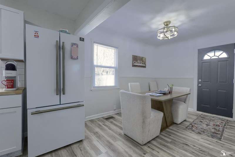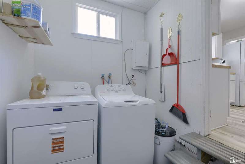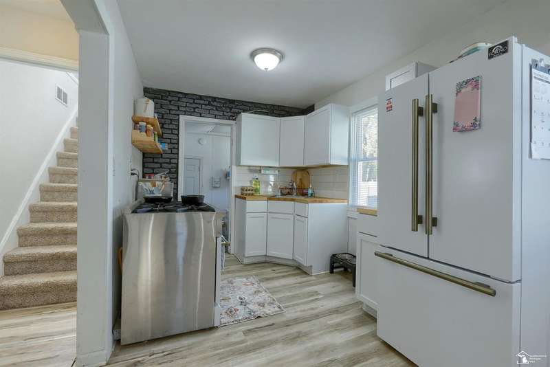 Check out this charming 1.5 Story Bungalow with Modern Updates! Step inside this beautifully updated 1.5-story bungalow that blends classic charm with today's modern touches. This 2-bedroom, 1-bath home has been thoughtfully refreshed from top to bottom and is truly move-in ready! Enjoy fresh paint throughout, new fixtures, and luxury vinyl plank flooring in the main living areas. Both bedrooms and the upper-level space feature new carpet, offering warmth and comfort. The updated kitchen showcases new cabinets, butcher block countertops, and open shelving plus, a brand-new, top-of-the-line refrigerator that stays! The new washer and dryer are also included for your convenience. The bathroom has been stylishly updated with contemporary fixtures and a tiled shower, while a brand-new A/C unit keeps the home cool and comfortable in the summer months. Outside, you'll love the large fenced yard, perfect for relaxing or entertaining, along with the 1.5-car detached garage offering extra storage space. Located just steps from the park and elementary school, this home is ideal for anyone seeking a charming, move-in-ready space.